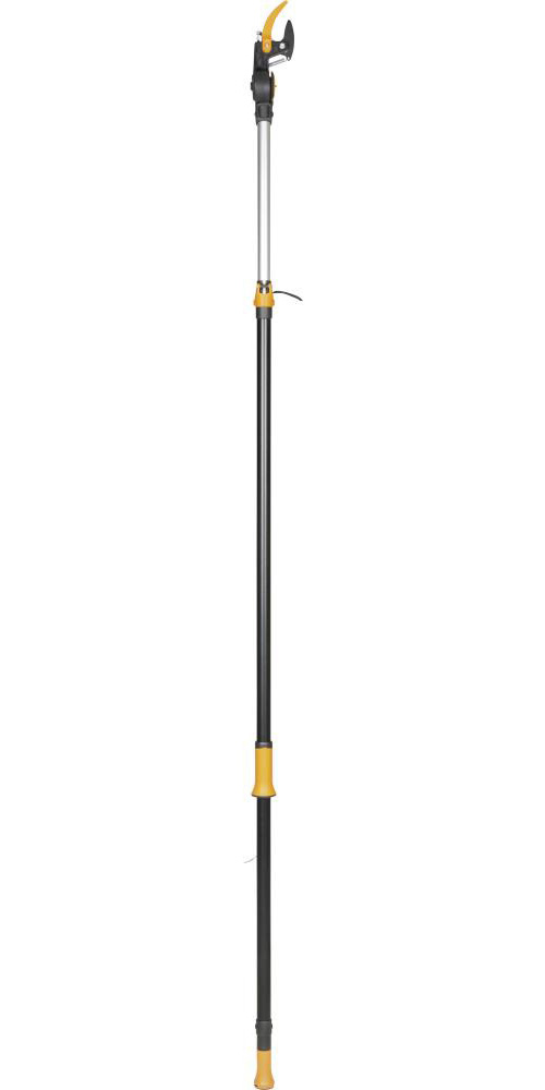 - Die Fiskars Teleskop-Schneidgiraffe Power Gear UPX86 ermöglicht das Schneiden von höher gelegenen Ästen bis zu einer maximalen Arbeitshöhe von 6 m.