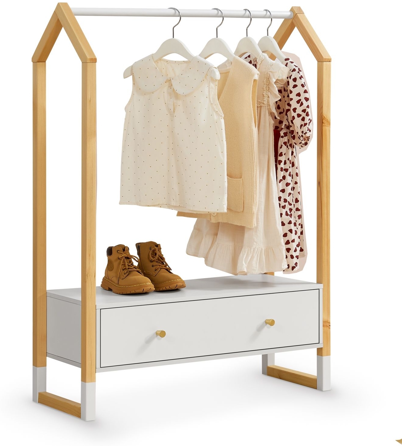 | Name | Juskys Kinder Kleiderständer Filla - große Schublade, Kleiderstange, offener Ständer - Kindergarderobe aus Holz - Mädchen & Jungs - Garderobe Weiß |