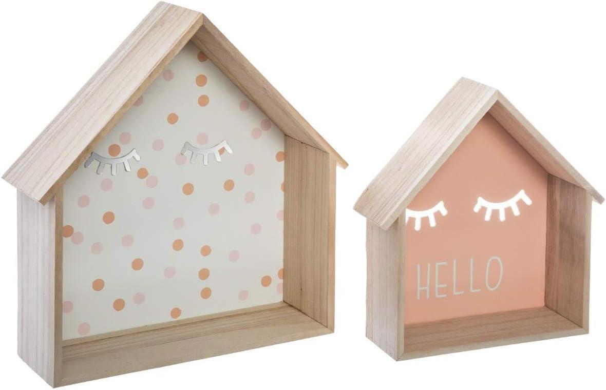 Dekorative Regale HOUSE für Kinder im Set von 2 Stück bieten eine stilvolle und praktische Lösung für das Kinderzimmer. Hergestellt aus starkem MDF, zeichnen sich die Regale durch ihre bemerkenswerte Haltbarkeit aus und sind ideal für die Aufbewahrung von Familienfotos und Souvenirs. Mit den Abmessungen 25,5 x 8 x 27 cm und 32,5 x 10 x 34,8 cm sind sie einfach zu montieren und benötigen keine mehreren Löcher. **Highlights** - Extrem stabil und stabil dank hochwertiger Materialien - Bemerkenswerte Haltbarkeit für schwere Gegenstände - Perfekt für Familienfotos und Souvenirs - Einfache Installation ohne mehrere Löcher - Ideales Regal für das Kinderzimmer **Produkteigenschaften** - Set von 2 Regalen: 25,5 x 8 x 27 cm und 32,5 x 10 x 34,8 cm - Hergestellt aus starkem MDF - Langlebig und solide - Schönes Design für das Kinderzimmer - Einfache Montage - Praktisch für die Aufbewahrung wichtiger Dinge **Lieferumfang** - 2 Regale (25,5 x 8 x 27 cm und 32,5 x 10 x 34,8 cm) - Montageanleitung - Ausschluss von Dekoration und Zubehör