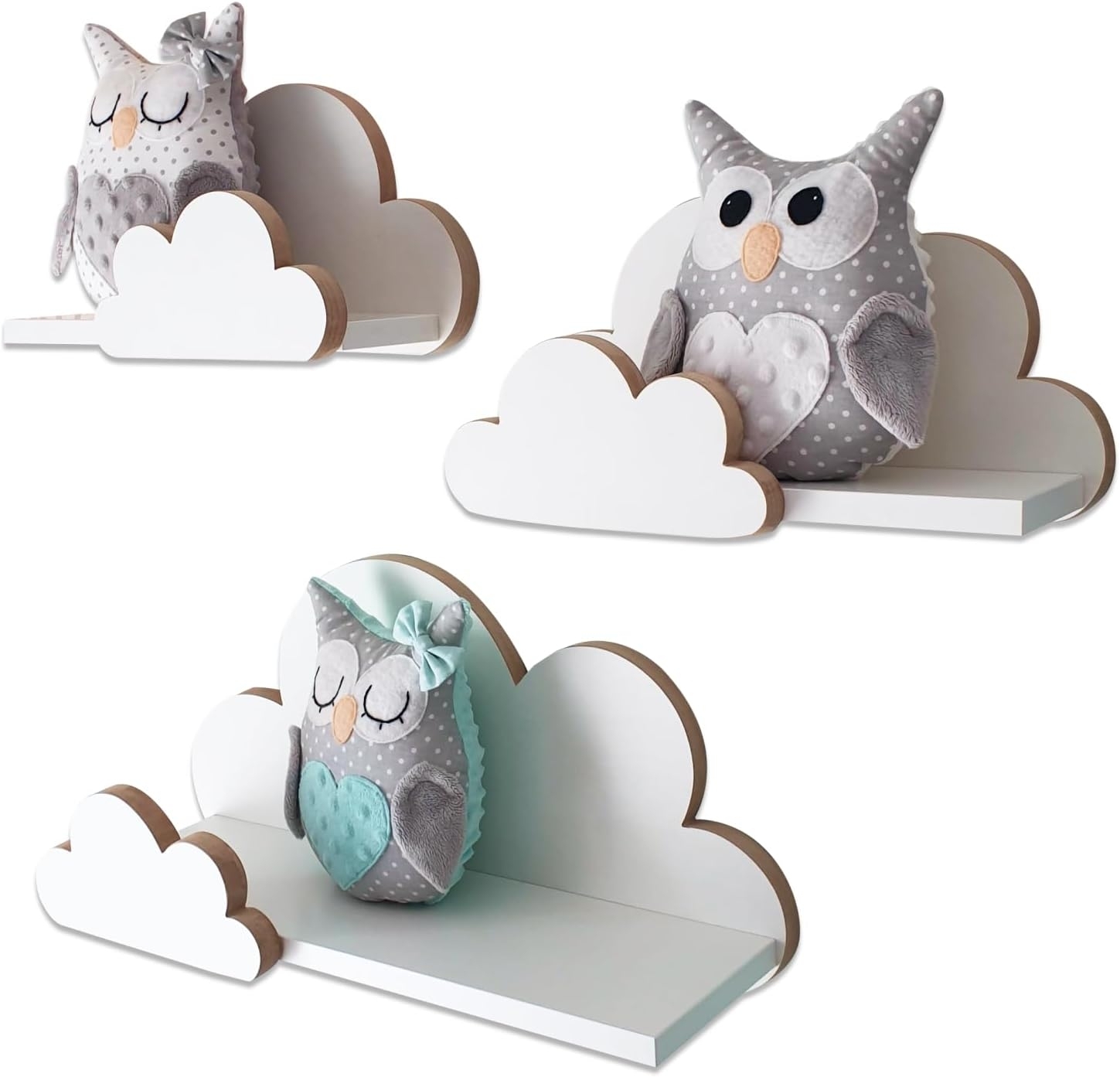 MOLILAND Wolkenregal Babyzimmer3 Stück, Wandregal in Weiß, Wolke aus Holz im skandinavischen Stil, mit Befestigungssatz, Moli