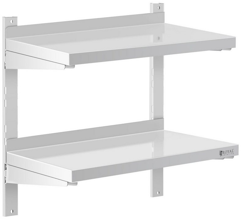 | Name | Royal Catering Hängeregal 60 x 30 cm Wandbord Doppel Wandregal Edelstahl Regal 2 Ablagen |