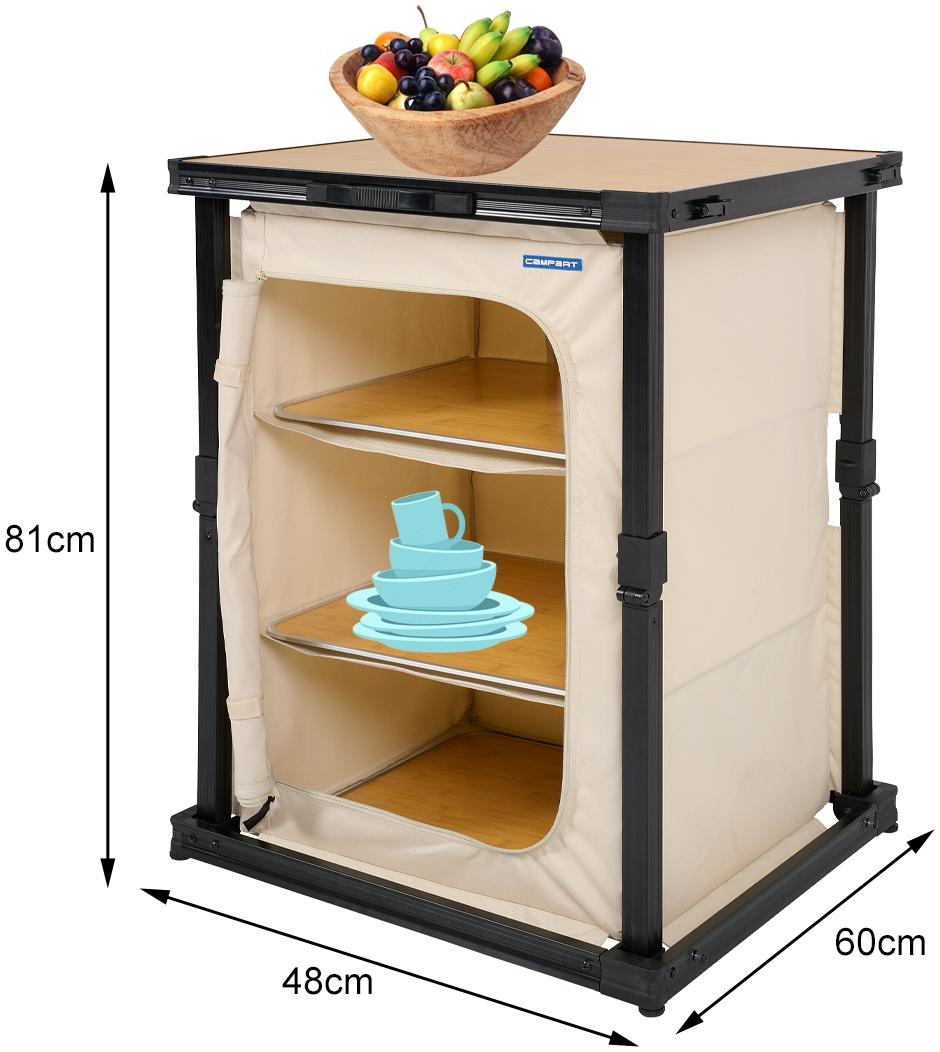 | Name | Campingschrank LYON faltbar - 3 Fächer Stoff Natur 48x60x81cm |