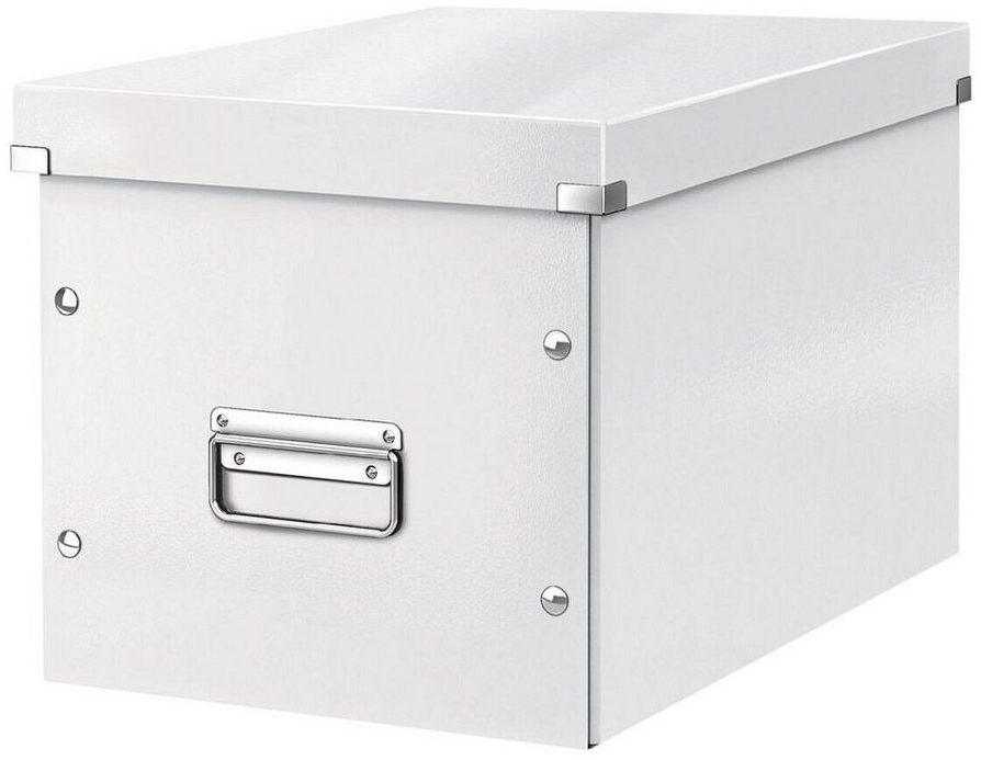 Die LEITZ Aufbewahrungsbox Click & Store Cube in groß ist die ideale Lösung für die Aufbewahrung und den Transport von hohen Gegenständen oder Material im A4-Format. Die stabile Box aus Hartpappe bietet eine Hochglanzoptik und ist mit einem Deckel mit metallverstärkten Ecken ausgestattet. Dank der Metallgriffe ist ein leichter Transport gewährleistet. Die Box ist stapelbar und eignet sich perfekt für Standardmöbel mit kubischen Fächern. **Highlights** - Hochglanzoptik für ansprechende Präsentation - Metallverstärkte Ecken für zusätzliche Stabilität - Leichter Transport durch Metallgriffe - Patentierte Konstruktion schützt vor unbeabsichtigtem Öffnen - Einfacher Aufbau durch Druckknöpfe **Produkteigenschaften** - Material: Hartpappe mit PP-Laminierung (1400 g/m²) - Maße: Würfelform - Hohe Stabilität und leicht zu reinigen - Inhalt pro Pack: 1 Stück **Lieferumfang** - 1 x LEITZ Aufbewahrungsbox Click & Store Cube, groß - Ausschluss von weiteren Produkten