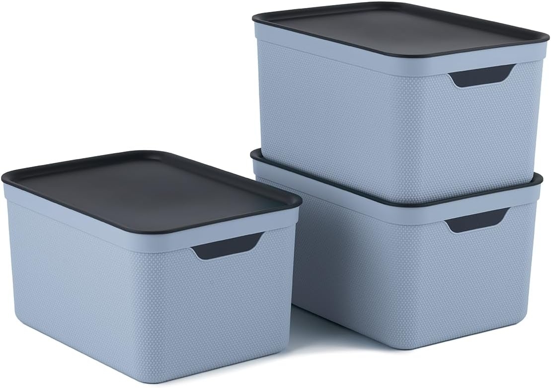 Jive 3er Set Dekobox A4 fog blue 3er- Set Aufbewahrungsbox 16l mit DeckelKunststoff (PP recycelt), blau/anthrazit, 3x16l (37.5 x 27.8 x 29.8 cm)