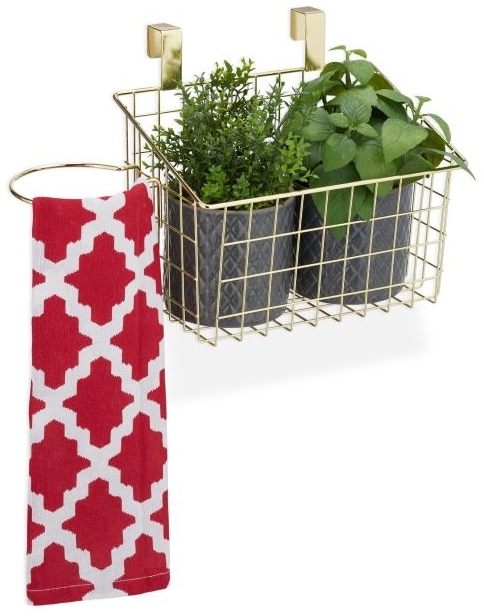 Praktischer Einhängekorb aus Metall für mehr Ordnung in Ihrer Küche oder im Bad. Der stabile Drahtkorb in glänzendem Gold bietet ausreichend Platz für Küchenutensilien oder Badzubehör. Dank des platzsparenden Aufhängedesigns ist er vielseitig einsetzbar, z.B. an der Schranktür oder am Heizkörper. **Highlights** - Stabiler Drahtkorb für mehr Ordnung - Glänzendes Gold für stilvolles Ambiente - Vielseitig einsetzbar in Küche und Bad - Platzsparendes Aufhängedesign - Ring für Haartrockner oder Geschirrtuch **Produkteigenschaften** - Farbe: Gold - Material: 100% Eisen - Maße: ca. 22,5 x 38 x 20 cm (H x B x T) - Geeignet für Türen bis ca. 2,5 cm Dicke