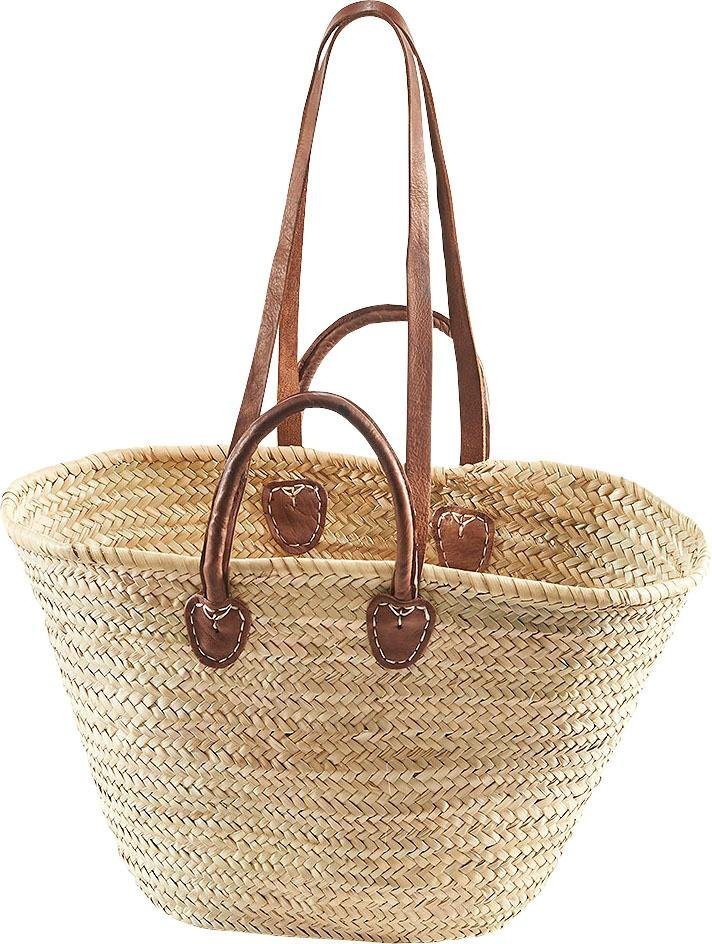 locker Aufbewahrungskorb StrandtascheKorbtasche, Palmtasche mit Ledergriffen und Lederhenkeln, Strandkorb im Bohostyle