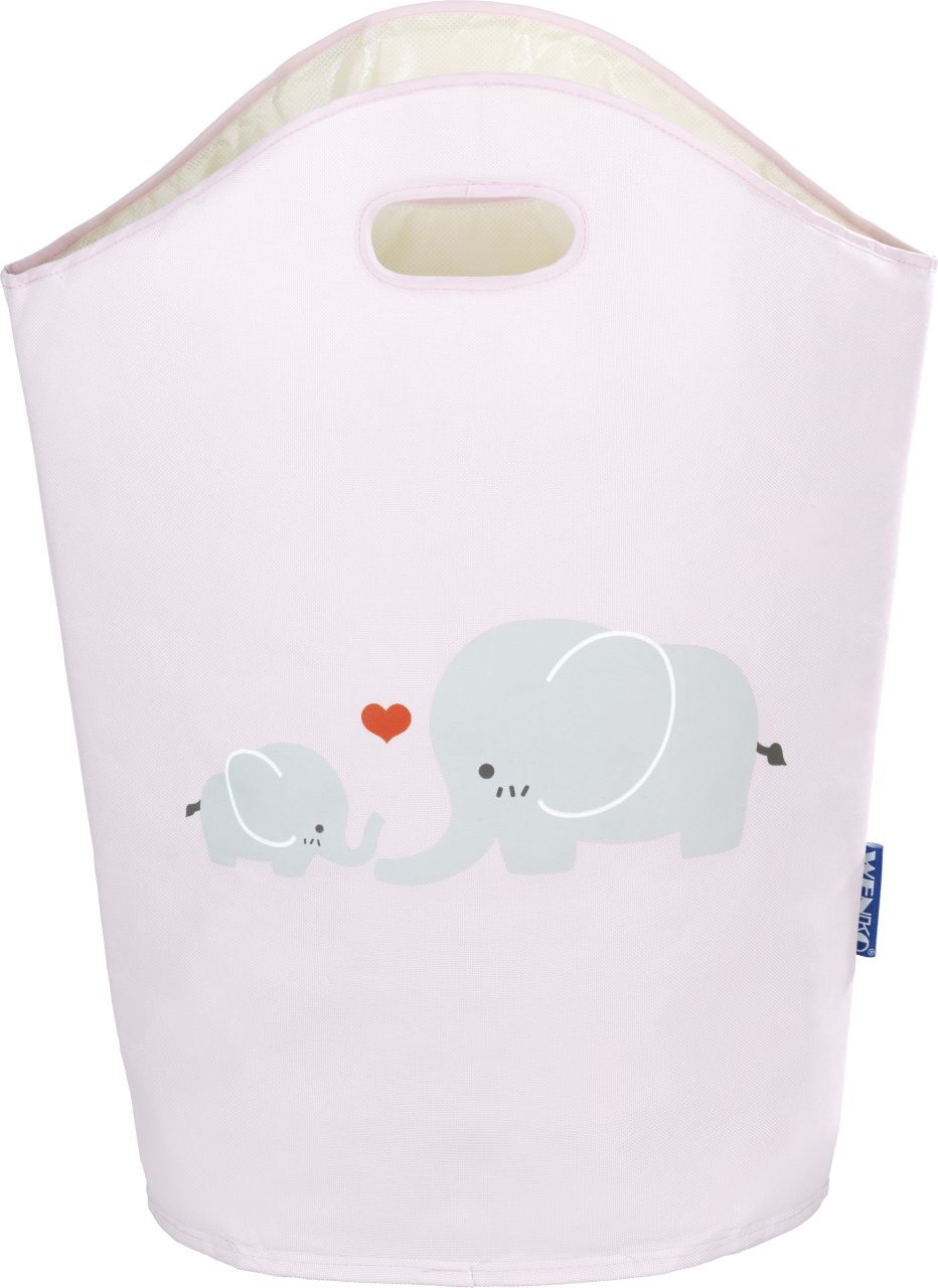 Der Wenko Wäschesammler Kids Elli 24 l bietet Eltern von Babys und Kleinkindern einen praktischen Nutzen. Der Sammler ist stabil, gut verarbeitet und hat ein niedliches Elefantenmotiv. Besonders vorteilhaft ist die abweisende Beschichtung im Inneren, die Babykleidung vor Feuchtigkeit schützt. Mit zwei Griffen lässt sich der Wäschesammler leicht transportieren.