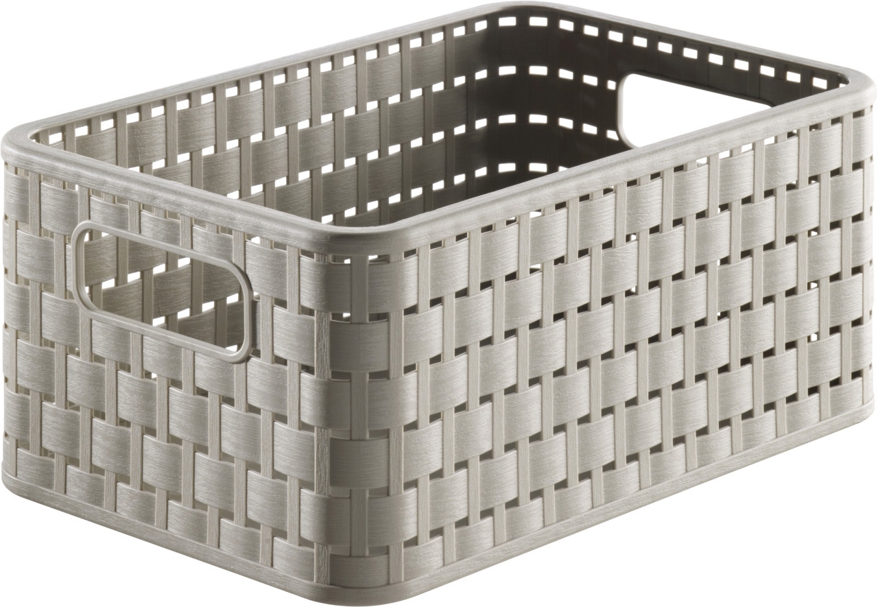 Korb 6 Liter A5 COUNTRY in der Farbe cappuccino ist die ideale Lösung für Ihre Aufbewahrungsbedürfnisse. Hergestellt aus hochwertigem Kunststoff, bietet dieser Korb ein Fassungsvermögen von 6 Litern. Mit den Maßen 28 x 18,5 x 12,6 cm ist er vielseitig einsetzbar und passt in verschiedene Regale. Der Korb ist abwaschbar und spülmaschinentauglich, was ihn besonders pflegeleicht macht. **Highlights** - Fassungsvermögen: 6 Liter für vielseitige Nutzung - Abwaschbar und spülmaschinentauglich für einfache Reinigung - Platzsparend stapelbar für optimale Raumausnutzung - Rattan-Optik für einen wohnlichen Look - Ideal für Küche, Bad, Wohn- oder Kinderzimmer **Produkteigenschaften** - Material: Kunststoff (PP), BPA-frei - Maße (L x B x H): 28 x 18,5 x 12,6 cm - Innenmaß: 21,8 x 15,6 x 12,2 cm (abgerundete Ecken) - Format: A5 - Hergestellt in der Schweiz **Lieferumfang** - 1 Korb 6 Liter "Country" in cappuccino