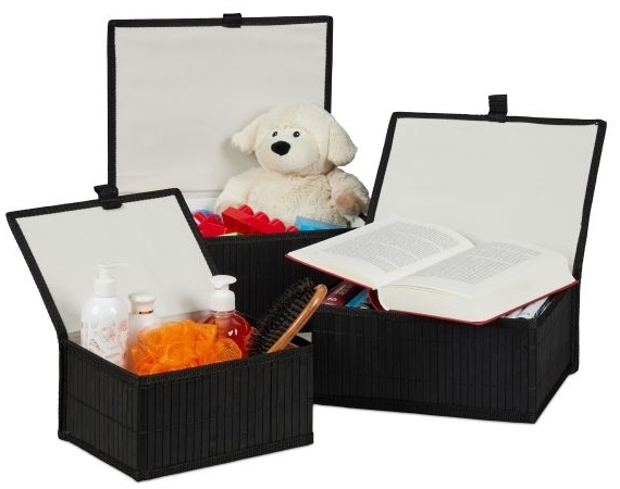 Beschreibung Der Aufbewahrungskorb im 3er Set bietet eine praktische Lösung zur Ordnung im Badezimmer und in anderen Räumen. Hergestellt aus feuchtigkeitsabsorbierendem Bambus, sind die Körbe ideal für die Aufbewahrung von Socken, Accessoires, Spielzeug und weiteren Kleinteilen. Mit einem Deckel ausgestattet, bleibt der Inhalt staubfrei. Die verschiedenen Größen ermöglichen eine flexible Nutzung in Regalen oder Schränken. **Highlights** - Feuchtigkeitsabsorbierendes Material für den Einsatz im Badezimmer - Praktischer Deckel für staubfreie Aufbewahrung - Vielseitig einsetzbar in Bad, Wohnzimmer und Kinderzimmer - Aus natürlichem und robustem Bambus gefertigt - Dekorative Boxen für eine ansprechende Raumgestaltung **Produkteigenschaften** - Maße Korb (S) H x B x T: ca. 13 x 25 x 19 cm - Maße Korb (M) H x B x T: ca. 14 x 30 x 23,5 cm - Maße Korb (L) H x B x T: ca. 15 x 33 x 25,5 cm - Volumen: ca. 5, 7,6 und 10 Liter - Material: Bambus, MDF-Platte, Polyester - Gesamtgewicht: ca. 1,2 kg **Lieferumfang** - 3x Aufbewahrungskorb - Dekoartikel sind nicht im Lieferumfang enthalten