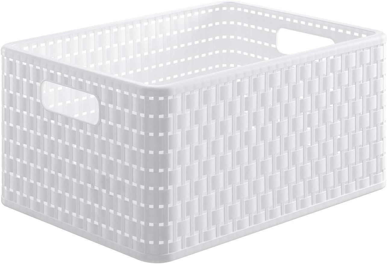 Der wohnliche Look von Naturmaterialien verbunden mit der Pflegeleichtigkeit von Kunststoff - das ist die ideale Aufbewahrungslinie für den Wohnbereich! Die Körbchen COUNTRY sind mit oder ohne Deckel eine Augenweide. Sie fügen sich in ein naturnahes Wohnambiente im Landhausstil ebenso harmonisch ein, wie in eine moderne Umgebung. Ob in Küche, Bad, Wohn- oder Kinderzimmer, sie sind überall beliebte Ordnungsschaffer, da sie einfach abwaschbar und bei Bedarf sogar spülmaschinentauglich sind. Maße: 36,8 x 27,8 x 19,1 cm (L x B x H), Volumen: 18 Liter, Farbe: weiß, Material: Kunststoff, platzsparend stapelbar, abwaschbar, passender Deckel ist separat erhältlich