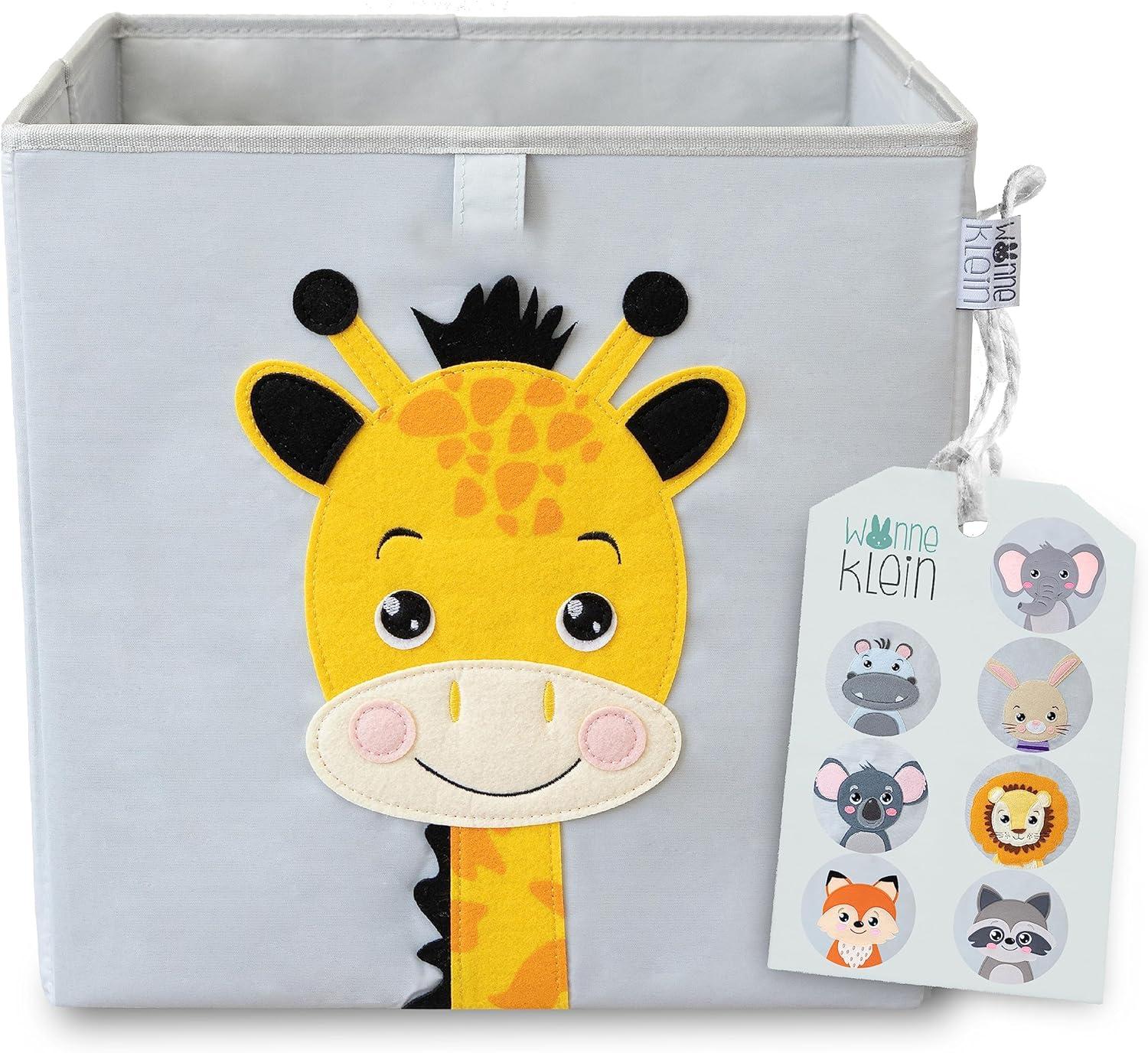 in Aufbewahrungskörbewonneklein Aufbewahrungsbox Kinder grau I extra stabile Spielzeugkiste für Kinderzimmer I Box (33 x 33 x 33 cm) zur Aufbewahrung I graue Ordnungsbox mit Tier Motiv (Greta Giraffe)