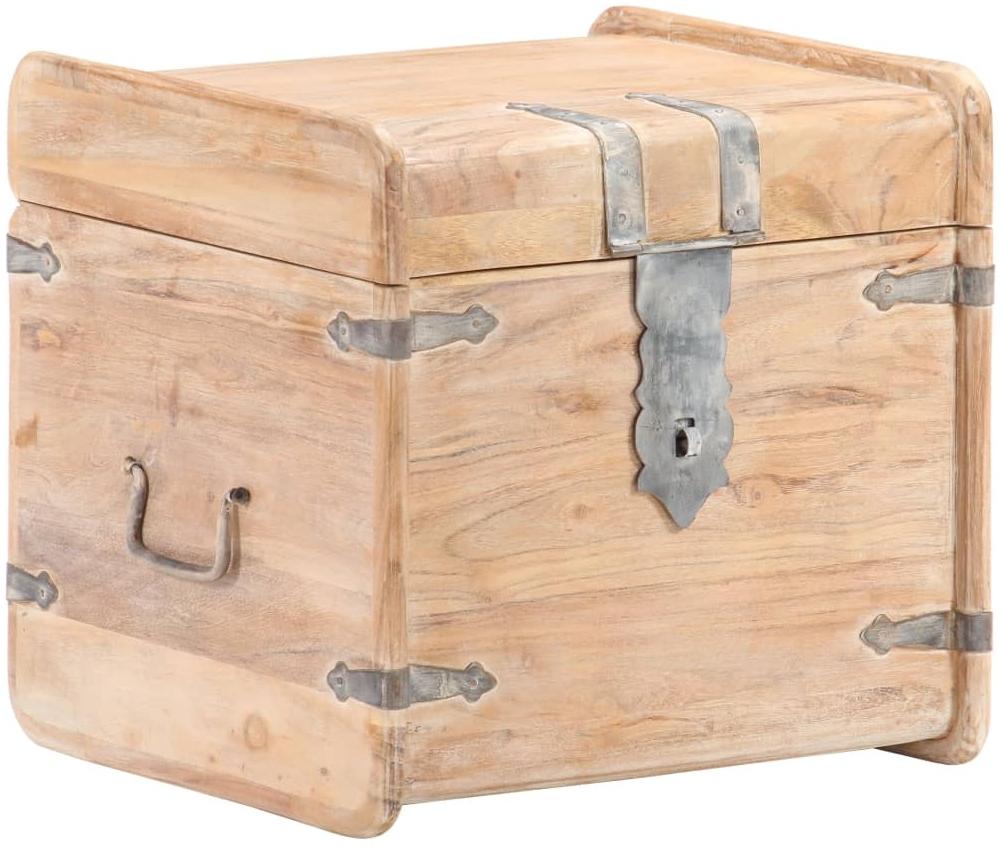 Die vidaXL Truhe aus massivem Akazienholz (40 x 40 x 40 cm) bietet Ihnen nicht nur viel Stauraum, sondern verleiht Ihrem Zuhause auch ein schlichtes und elegantes Aussehen. Mit einer robusten Verriegelung an der Vorderseite und seitlichen Griffen ist sie sowohl praktisch als auch stilvoll. Jedes Stück ist aufgrund der einzigartigen Holzmaserungen ein Unikat und wird zufällig geliefert. **Highlights** - Viel Stauraum - Robustes Akazienholz - Verriegelung an der Vorderseite - Seitliche Griffe zum Anheben - Kann auch als Nachttisch verwendet werden **Produkteigenschaften** - Material: Massives Akazienholz mit weißem Finish, Eisen - Abmessungen: 40 x 40 x 40 cm (B x T x H) - Abschließbar - Keine Montage nötig