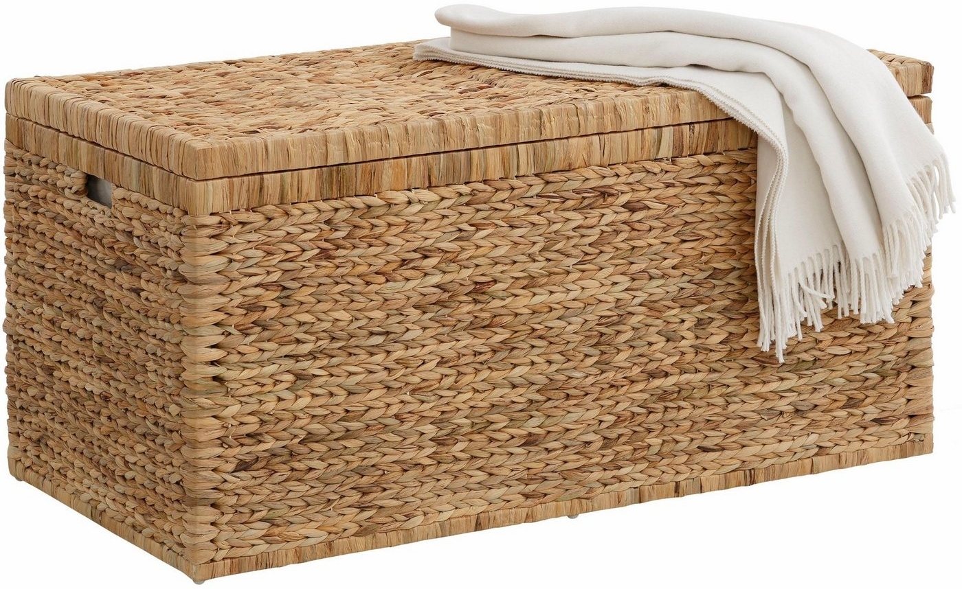 Die Home affaire Truhe vereint schlichte Eleganz mit praktischer Funktionalität. Sie ist aus geflochtenem Material auf Holzleisten gefertigt und innen mit Baumwolle bespannt. Diese atmungsaktive Truhe bietet ausreichend Stauraum für Textilien wie Bettwäsche und sorgt für eine übersichtliche Aufbewahrung. Ihr romantisches Design macht sie zudem zu einem ansprechenden Dekorationsobjekt. **Highlights** - Schlichtes Design mit natürlicher Ausstrahlung - Innen mit Baumwolle bespannt für atmungsaktive Aufbewahrung - Vielseitig einsetzbar für verschiedene Textilien - Bietet viel Stauraum - Komplett montiert geliefert **Produkteigenschaften** - Geflochtenes Material auf Holzleisten - Rechteckige Form **Lieferumfang** - Truhe, komplett montiert