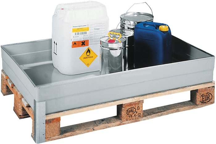 - Die CEMO GFK-Paletten-Auffangwanne hat ein Volumen von 150 Litern und ist speziell für Euro-Paletten konzipiert.