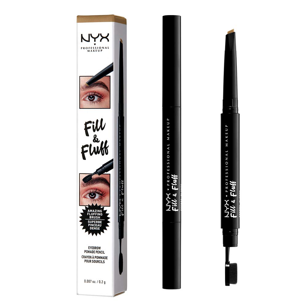 - Der zweiseitige Fill & Fluff Eyebrow Pomade Pencil von NYX Professional Makeup bietet eine drehbare Tropfen-Spitze, die es ermöglicht, mühelos feinste, haarähnliche Striche zu ziehen.