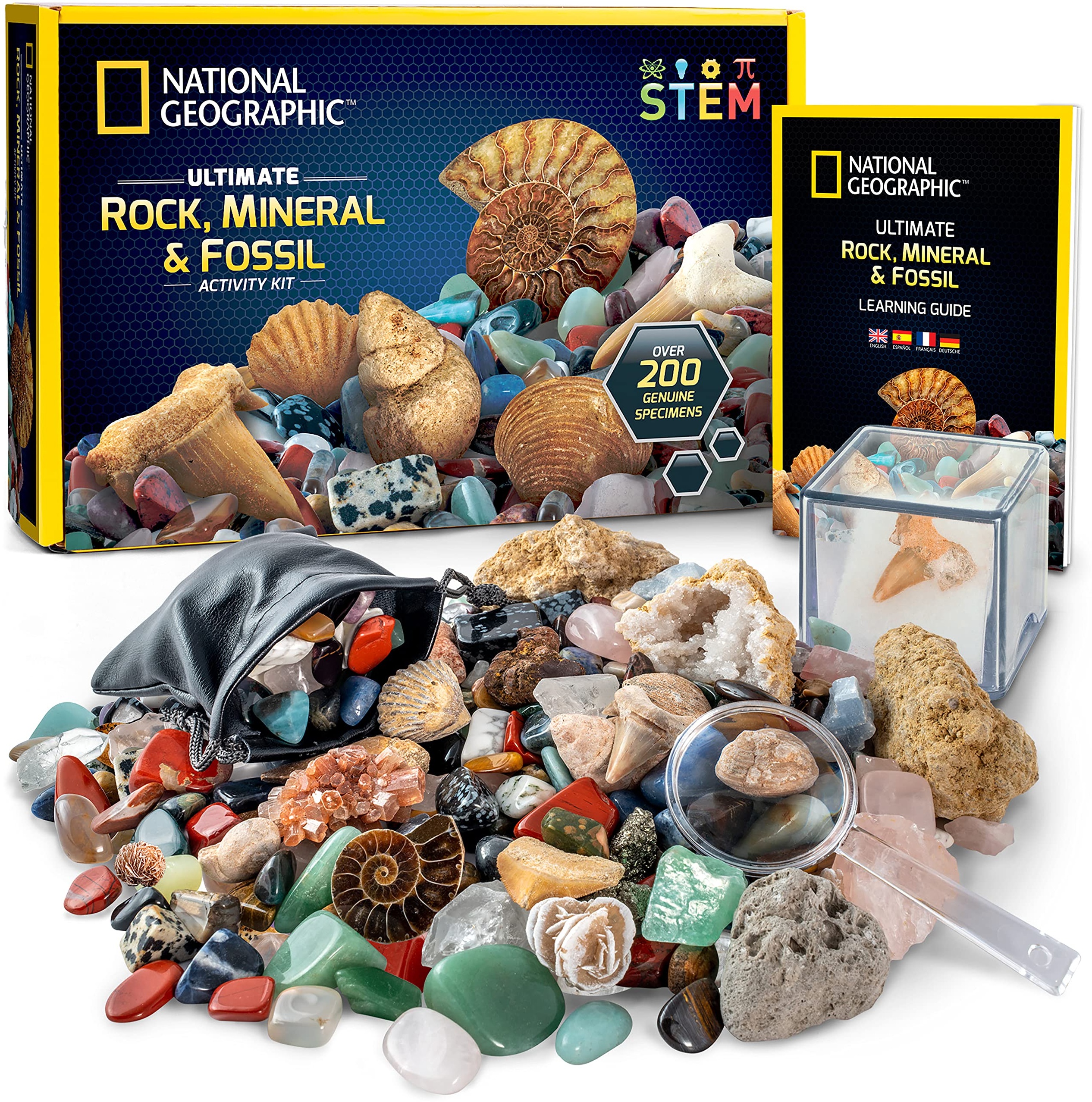 | Name | NATIONAL GEOGRAPHIC Edelsteine und Fossilien Set - 200-teiliges Set mit Geoden und Echten Fossilien -Rosenquarz Jaspis Aventurin - Viele Weitere Kristalle und Edelsteine für Kinder |