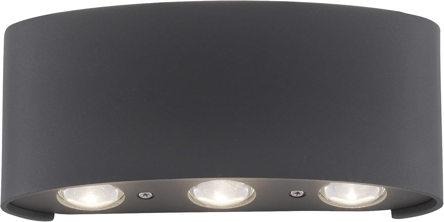 Markenleuchte von Paul Neuhaus | LED Außenwandleuchte Carlo up & down Länge: 17 cm Breite: 4,0 cm Höhe: 8 cm Farbe: anthrazit Material: Eisen, Kunststoff Technik: LED Leistung: 4 W Spannung: 230 V Farbtemperatur: 3000 K Lichtstrom gesamt : 720 lm Lichtstrom effektiv: 510 lm Schutzart: IP54 Schutzklasse: I