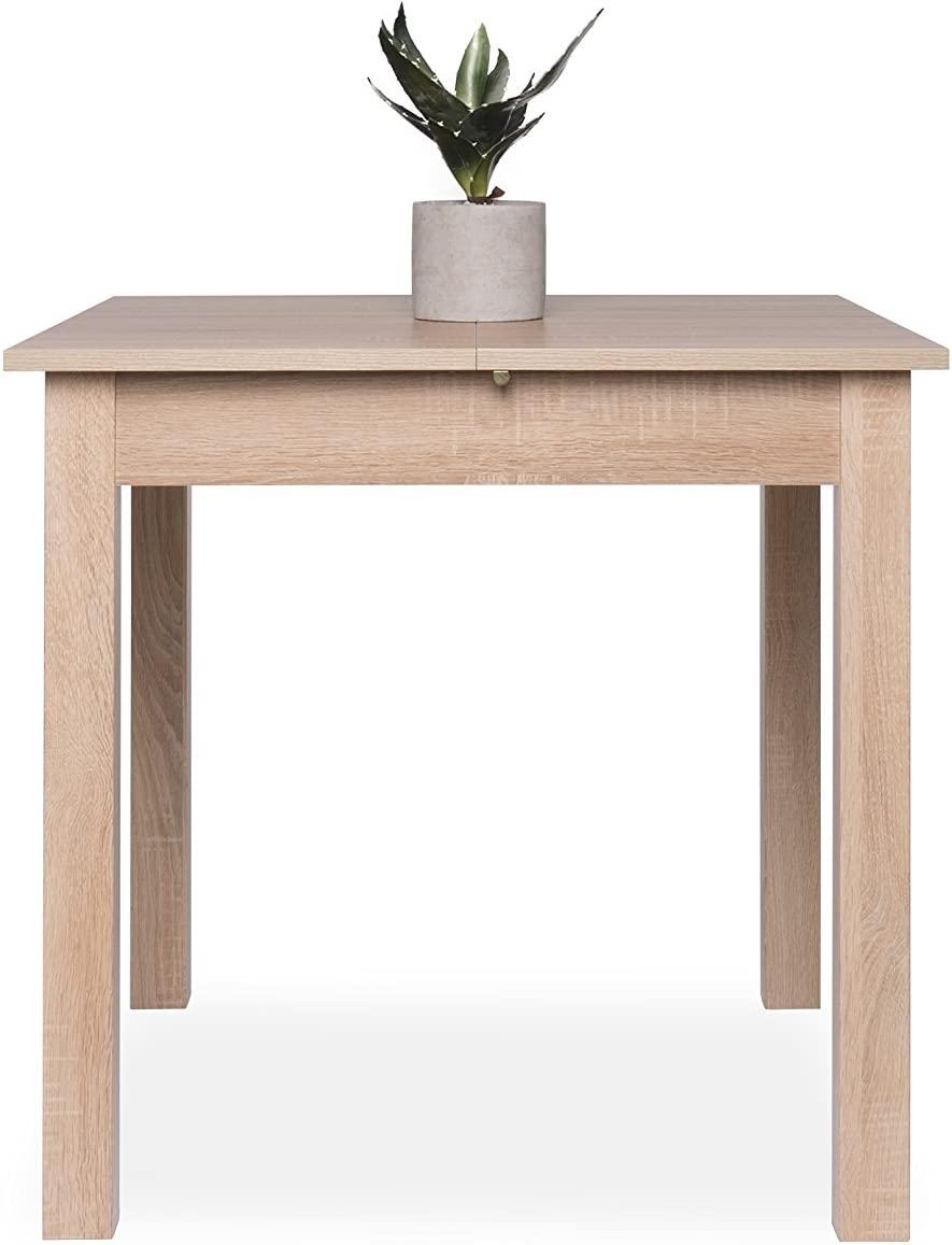 Günstiger und moderner Esszimmertisch inkl. Auszugsfunktion. Einer unserer neuesten Modelle mit dem sympathischen Problemlöser - Maß 80x80 cm. Mit äußerst stabilen und stämmigen Fußgestell. Ein empfehlenswertes Modell zu einen super günstigen Preis! Der Tisch kann ausgezogen werden und ist dann ca. 120 cm lang. Produktinformationen: Zustand: neu & originalverpackt **Material:** Holz **Farbe:** Eiche Sägerau Dekor Nb. Artikelgröße (Bx Hx T in cm): ca. 80 x 76 x 80 cm **Besonderheit:** . Made in Germany , Metallbeschläge , Melaminbeschichtete Oberfläche ausziehbar auf 120 cm Stabile Füße Metallbeschläge