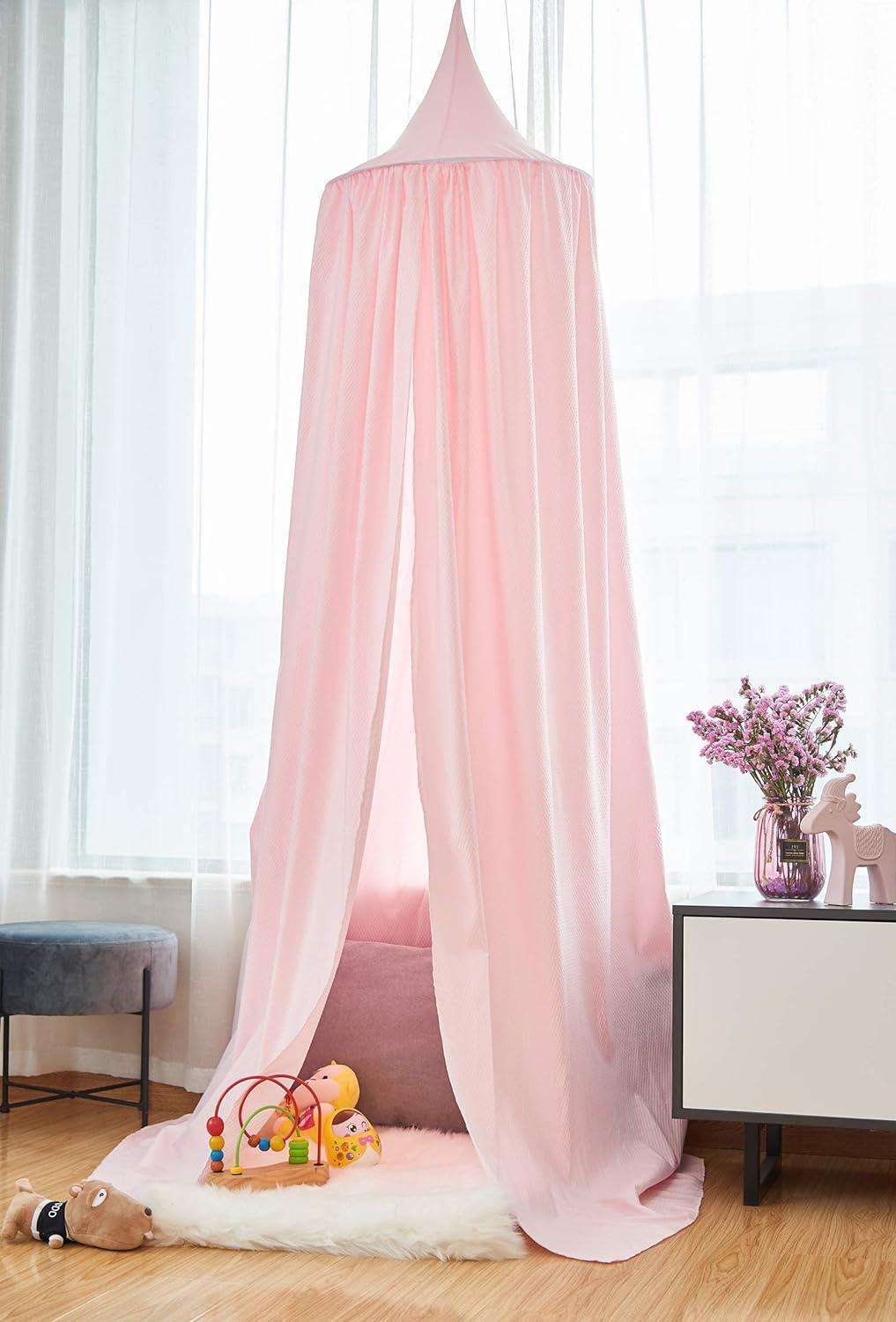 Der Woltu Betthimmel Baldachin Matelassé in Rosa ist die perfekte Ergänzung für das Kinderzimmer. Hergestellt aus hautfreundlichem Polyester, bietet er mit einer Höhe von 230 cm ausreichend Platz zum Spielen und Entspannen. Der weiche, atmungsaktive und knitterarme Stoff sorgt für ein angenehmes Raumklima. Die einfache Installation wird durch das mitgelieferte Montagezubehör unterstützt. **Highlights** - Hautfreundliches Polyester - Weicher, atmungsaktiver Stoff - Knitterarm und bügelfrei - Schafft einen eigenen Bereich für Kinder - Einfache Installation **Produkteigenschaften** - Höhe: 230 cm - Durchmesser Kreis oben: 60 cm - Material: 100 % Polyester - Gewicht: 650 g - Gewebe Gewicht: 100 g/m² **Lieferumfang** - 1 x Betthimmel - 1 x Gummihaken - 1 x Gummiplatte - 1 x doppelseitiges Klebeband - 2 x Schrauben