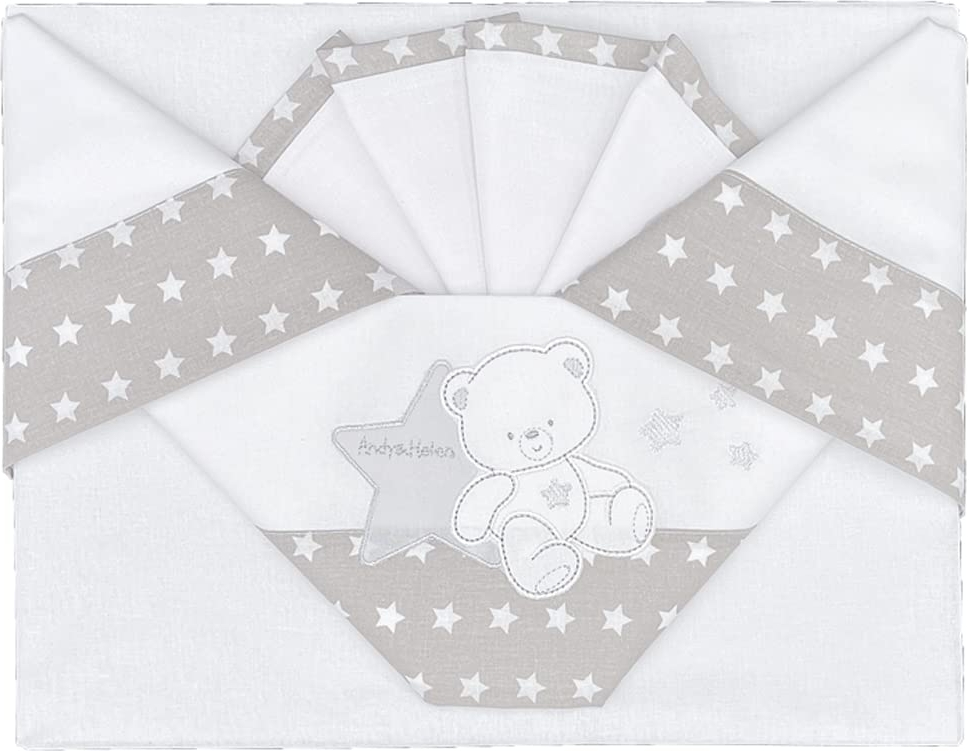 3-teiliges Set (Bettlaken und Kissenbezug) für Bettlaken Maße: 111x165 cm, 155x100 cm, 57x38 cm, Universalgröße, geeignet für Betten mit Gitterstäben 100% reine Baumwolle mit Stickerei Made in Italy