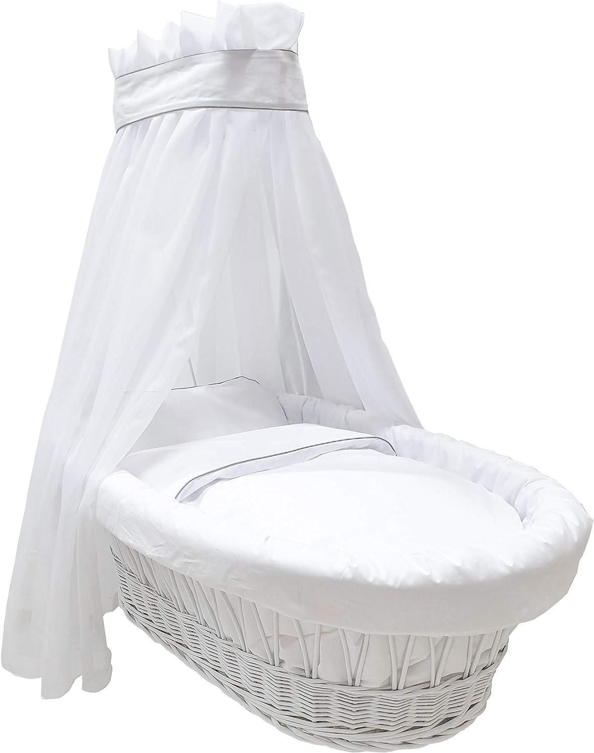 | Name | Amigos Ausstattung Bettwäsche für Stubenwagen, Weiß mit grauer Kante |