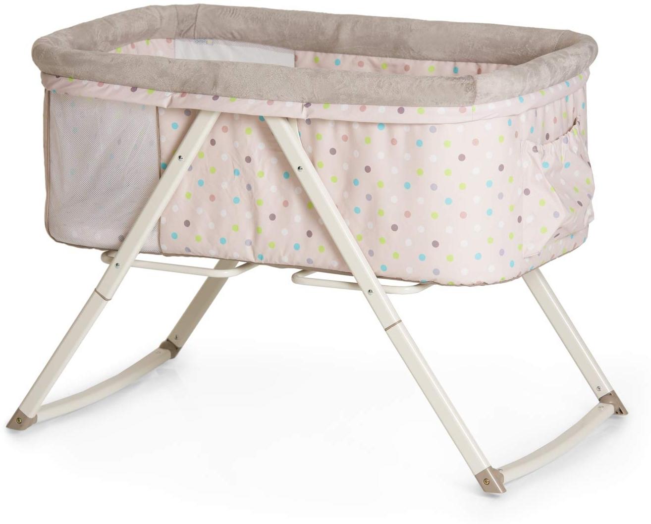 Hauck Dreamer BabywiegeStubenwagen, Beistellbett, Reisebett, inklusive Matratze und Spielzeugtasche, mit Schaukelfunktion, faltbar, klappbar und tragbar, Beige (Multi Dots Sand)