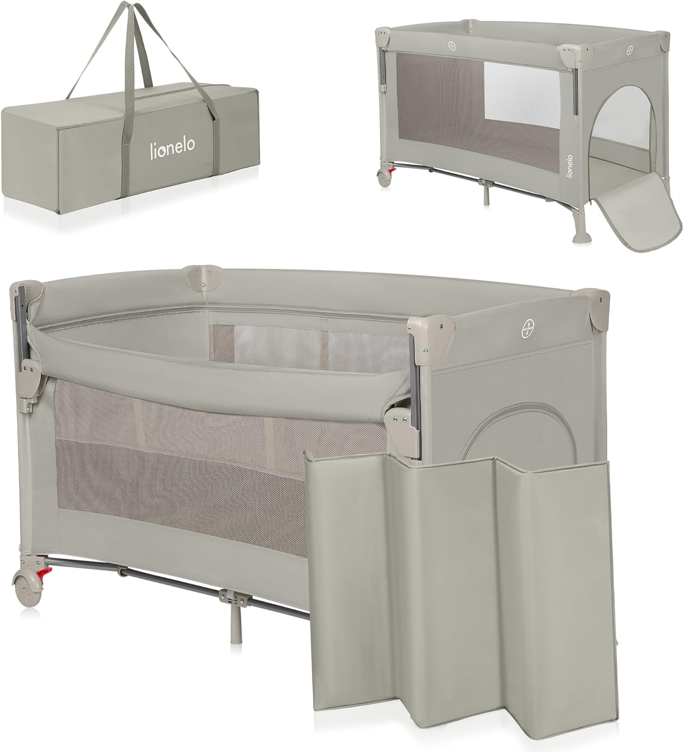 | Name | Lionelo Ellen 3 in 1 Reisebett von 0 bis 3 Jahren, Beistellbett für Neugeborene und ältere Kinder bis 15 kg, 2 Matratzenhöhen, Befestigungsgurte, seitlicher Reißverschluss, 2 Rollen, Tasche |
