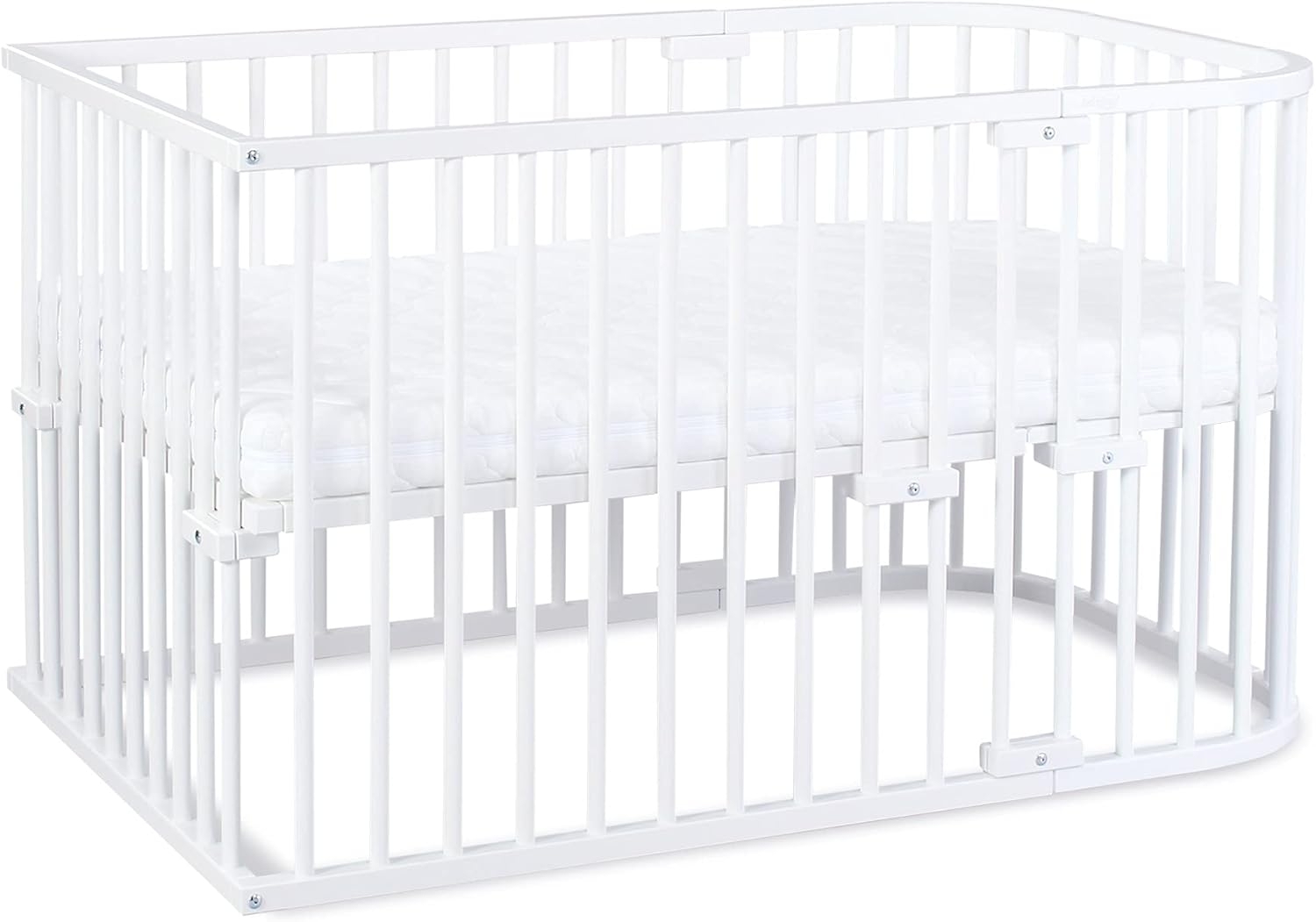 Das babybay Kinderbett-Set Original bietet ein flexibles Schlafsystem, das vom Beistellbett bis zum Jugendbett reicht. Mit einer stufenlosen Höhenverstellung von 13 cm bis 53,5 cm passt sich die Liegefläche individuell an das Alter Ihres Kindes an. Das Set umfasst das Beistellbett babybay Original sowie die Matratzen Klima Wave und Klima extraluftig. Sicherheit wird durch die Prüfungen nach DIN EN 716-1 und EN71-3 gewährleistet. **Highlights** - Stufenlose Höhenverstellung für individuelle Anpassung - Flexibel nutzbar als Beistellbett, Kinderbeistellbett und Jugendbett - Bequemes Ein- und Aussteigen durch abnehmbares Seitengitter - Sicherheitsgeprüft nach DIN EN 716-1 und EN71-3 - Maximale Belastbarkeit von 100 kg **Produkteigenschaften** - Liegefläche (LxB): 132 x 81 cm - Höhenverstellung Oberkante der Liegefläche: 13 - 53,5 cm - Gesamtlänge: 138 cm - Breite: 87 cm - Höhe: 79 cm - Material: Vollholz Buche, Stoff - Maximale Bettrahmenbreite: 9 cm - Pflegehinweis Matratzenbezug: Maschinenwaschbar bis 60 °C - Oberstoff Zusammensetzung: 61 % Polyester, 39 % Baumwolle - Farbe Holz: weiss **Lieferumfang** - 1 x babybay Original mit Matratze Klima Wave - 1 x Umbausatz Original mit Matratze Klima extraluftig - Weiteres abgebildetes Zubehör ist nicht Teil des Lieferumfangs.