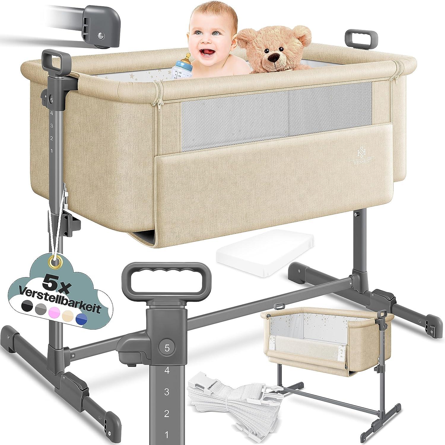 in Babybetten: BeistellbettenKESSER® Zustellbett Hubi 3in1 Baby Beistellbett Reisebett Babybett mit weich Matratzemit Rollen Kinderbett, 5-fach Höhenverstellung, Faltbare Seitenwand für zu Hause und unterwegs Beige