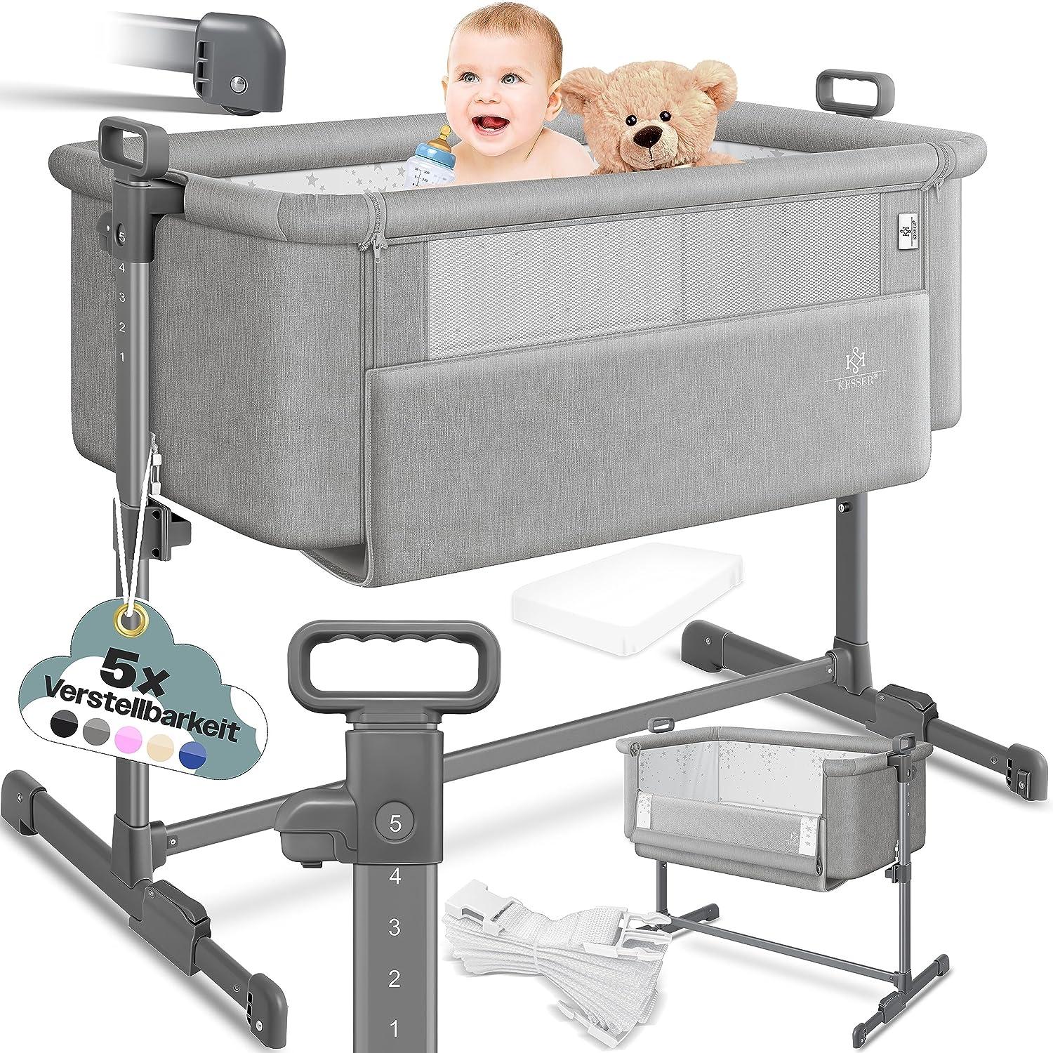 in Babybetten: BeistellbettenKESSER® Zustellbett Hubi 3in1 Baby Beistellbett Reisebett Babybett mit weich Matratzemit Rollen Kinderbett, 5-fach Höhenverstellung, Faltbare Seitenwand für zu Hause und unterwegs Hellgrau