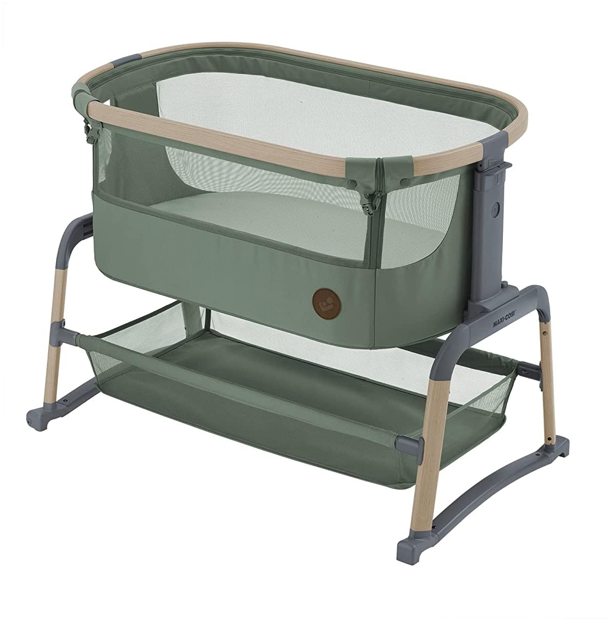 Maxi-Cosi Iora Air BeistellbettZustellbett, atmungsaktives Netzgewebe, Höhenverstellbar, Wiege mit Matratze, Eco Care, Geeignet ab Geburt, 0 Monate bis 9 kg, Beyond Green