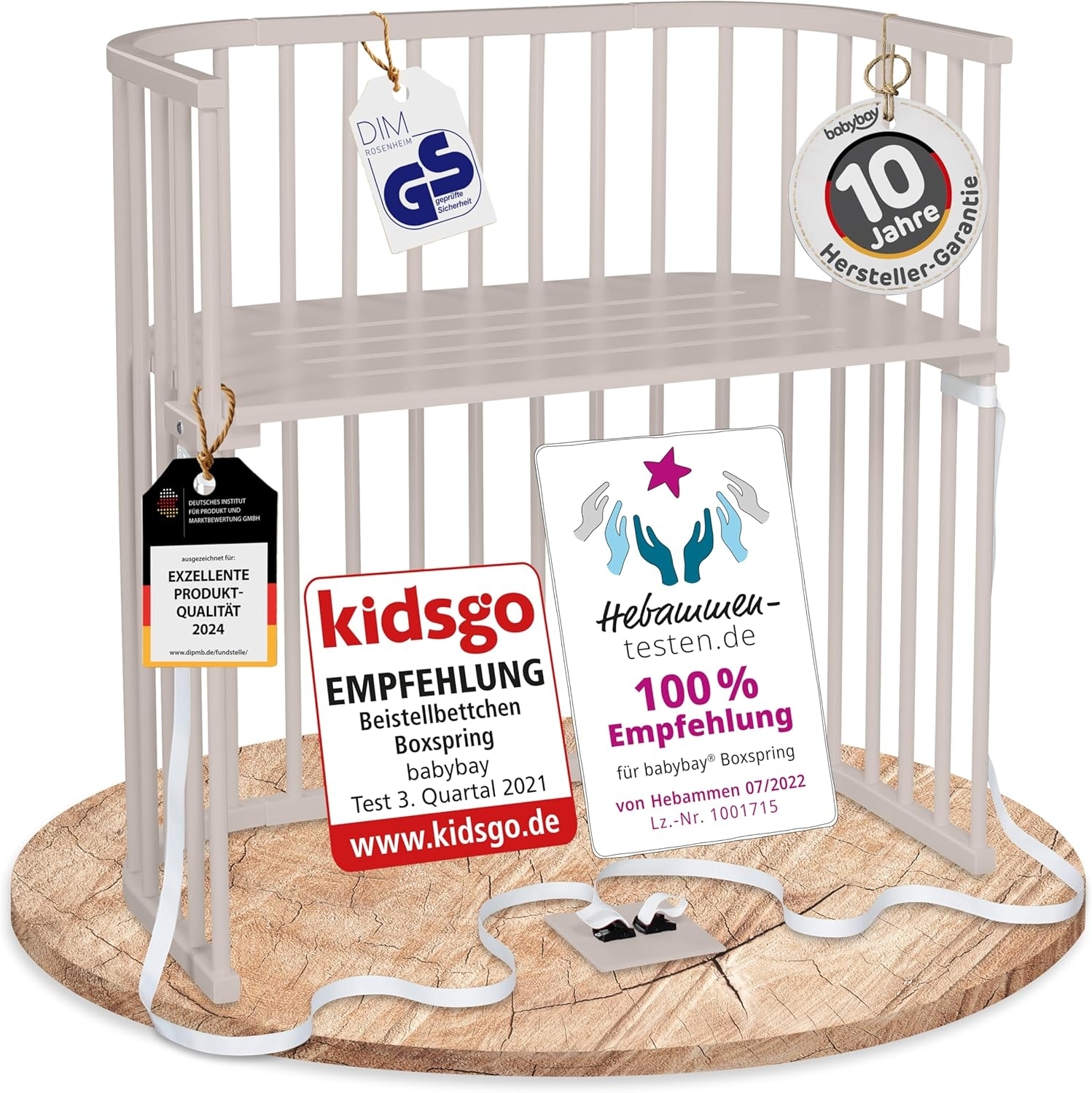 | Beschreibung | Das babybay Boxspring Beistellbett in beige lackiert ist die ideale Lösung für hohe Betten. Die stufenlose Höhenverstellung passt die Liegefläche perfekt an Boxspringbetten an, ohne Stufe oder Spalt. Dank der Belüftung und der Gurtbefestigung ist eine optimale Luftzirkulation gewährleistet. Das Bett ist bis zu 150 kg belastbar, TÜV-geprüft und aus nachhaltigem Buchenvollholz gefertigt. **Highlights** - Stufenlose Höhenverstellung für perfekte Anpassung an hohe Betten - Belüftete Liegefläche für optimale Luftzirkulation - Einfache und sichere Gurtbefestigung ohne Werkzeug - Massive Bauweise bis zu 150 kg belastbar - TÜV-geprüft und aus nachhaltigem Buchenvollholz gefertigt **Produkteigenschaften** - Maße: Länge 96 cm, Breite 54 cm, Höhe 96 cm - Liegefläche: 89x51 cm - Höhenverstellung: 13-71 cm - Maximale Elternbettbreite: 200 cm - Lackierung: beige, schadstoff- und lösungsmittelfrei - Material: antibakterielles Buchenvollholz - Geprüft nach DIN EN 71 Teil 3 **Lieferumfang** - 1x babybay Beistellbett Boxspring beige lackiert |