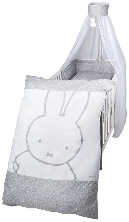 - Die roba Bettgarnitur 'miffy®' besteht aus vier Teilen, darunter Bettwäsche, Nestchen und Himmel