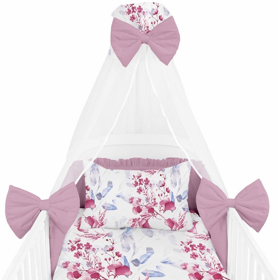 Amilian Babybettwäsche Set 7-teilig - Bettwäsche 100x135 - Kissenbezug 40x60 - mit HimmelChiffonhimmel, 7 teilig, Komplett-Set für Babybett, Gitterbett - Kinderbettwäsche
