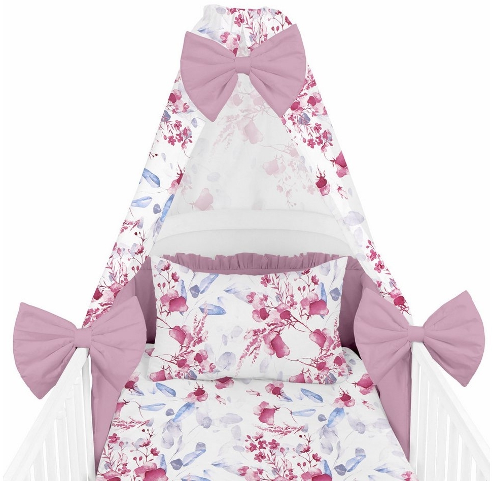 Amilian Babybettwäsche Set 7-teilig - Bettwäsche 100x135 - Kissenbezug 40x60 - mit HimmelVollstoffhimmel, 7 teilig, Komplett-Set für Babybett, Gitterbett - Kinderbettwäsche