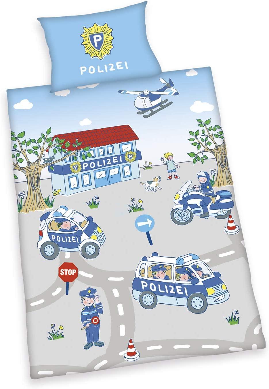 Polizei Baby Flanell Bettwäsche Set 100x135 cm - hautsymphatisch-tadellos verarbeitet - GOTS zertifiziert - sorgfältig kontrolliert-garantiert schönes Aussehen auch nach vielen Wäschen -Bettbezug: 100x135 cm -Kopfkissenbezug: 40x60 cm -waschbar bei 60°C, trocknergeeignet Material: 100% Bio-Baumwolle