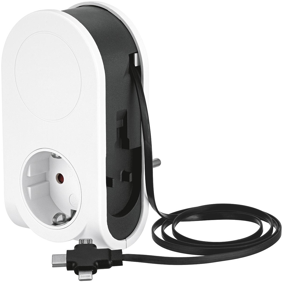 | Beschreibung | Das flexible USB Ladegerät zum Laden Ihrer elektrischen Geräte, wie z. B. Handy, Smartphone, Tablet, Laptop, MP3-Player, Digitalkamera, etc. Das flexible Ladegerät bietet Ihnen drei Lademöglichkeiten: Ein 80cm langes ausziehbares Ladekabel mit Lightning, Micro USB und USB-C Stecker, eine USB-Steckdose Typ A und eine 230V Schutzkontakt-Steckdose. Der Adapter wird einfach als Zwischenstecker in eine im Haus oder in der Wohnung übliche Steckdose eingesteckt. Die Steckdose ist zur Sicherheit mit einem erhöhten Berührungsschutz ausgestattet. Eigenschaften: 3 in 1: Lightning, Micro USB, USB-C Stecker ausziehbares Ladekabel 80 m IP 20 USB Port Typ A für eigenes Ladekabel USB: 5, VDC, max 3,1 A, max 15,5 W (gesamt), max 2,4 A, max 12 W (pro Ladeport) 1 x Schuko-Steckdose 230 V, 50 Hz, 16 A, 3. 680 |