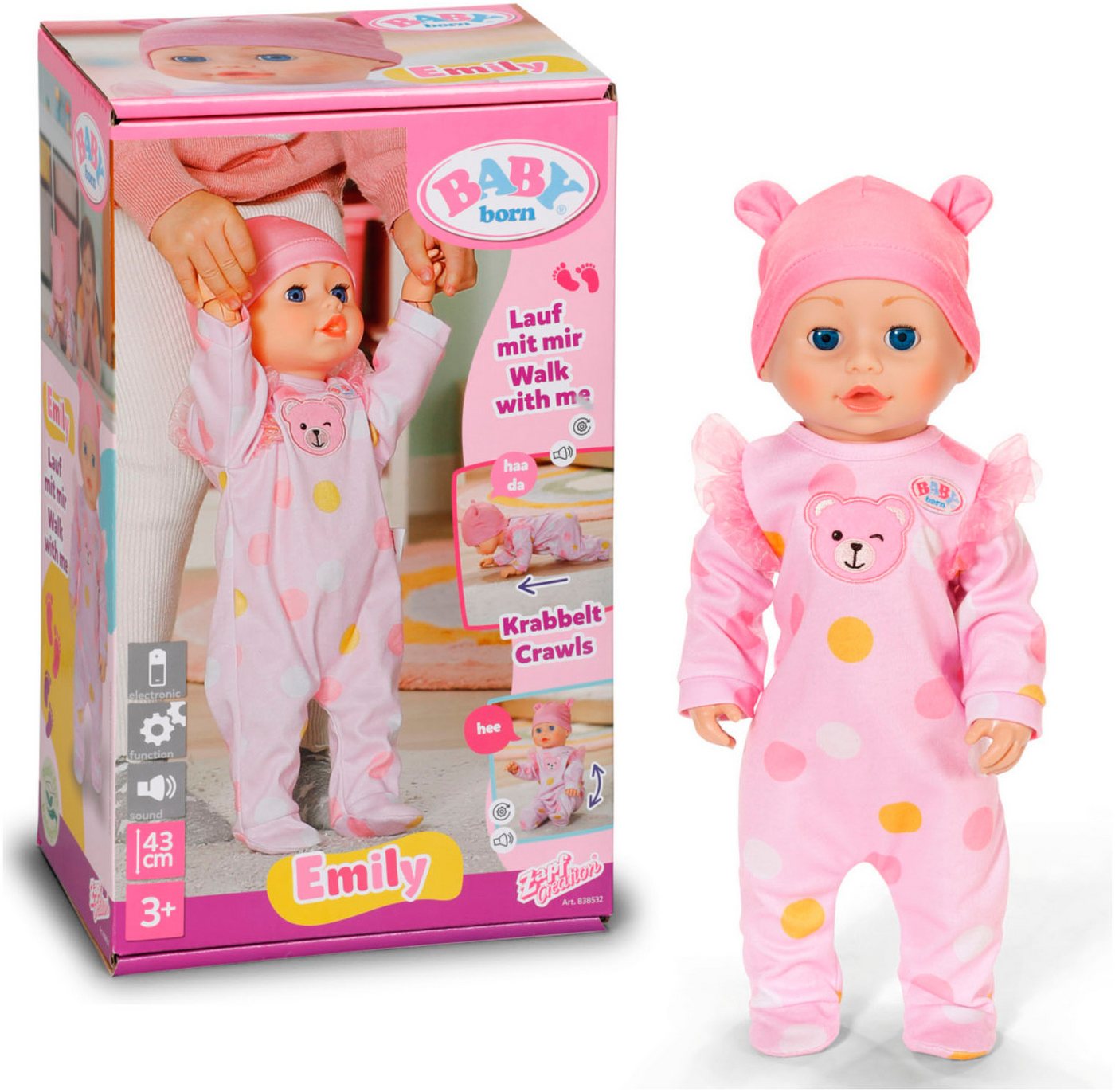 Baby Born Stehpuppe Emily43 cm Laufhilfe mit Babygeräuschen und krabbelnder Funktion