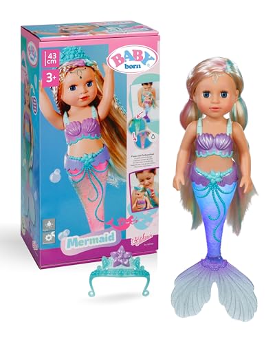 - Entdecken Sie die zauberhafte Baby Born Meerjungfrauenpuppe, die sowohl im Wasser als auch an Land für viel Spaß sorgt