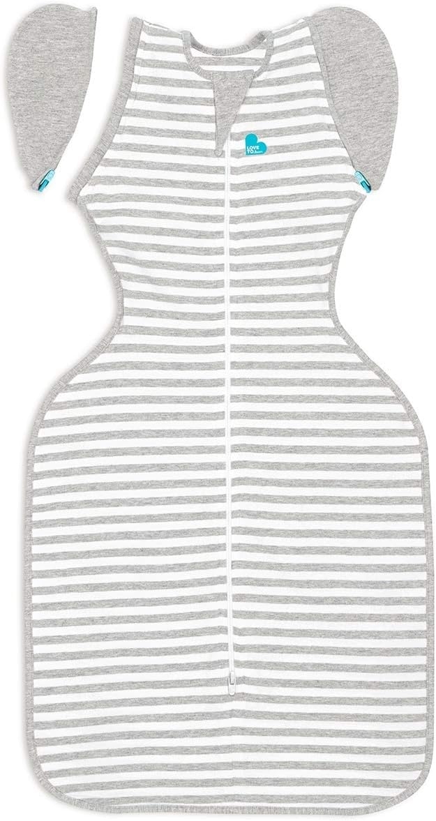 Der süße Swaddle UP 50/50 Pucksack von Love to Dream hält Ihr Baby kuschelig und bequem, ohne dass Sie sich Sorgen um lose Decken machen müssen. Mit diesem Übergangs-Babwickel können Sie einen Flügel nach dem anderen abnehmen, so dass sich Ihr Baby langsam auf den \"armfreien\" Schlaf einstellen kann. Das Wickeln hilft Babys beim Schlafen, indem es ihnen das Gefühl der Sicherheit gibt und hilft, ihren natürlichen Schreckreflex zu beruhigen. Legen Sie einfach die Beine Ihres Babys in das Beinteil und die Arme in die \"Flügel\" der Babybaddecke. Wickeln Sie die Seiten über das Baby und befestigen Sie sie mit dem Reißverschluss über seiner Brust. So kann Ihr Baby mit erhobenen Armen in einer natürlichen Position schlafen! Darüber hinaus kann Ihr Kind auf die Hände zugreifen, um sich selbst zu beruhigen. Die Oberfläche dieser Babywickel ist weich, sanft und atmungsaktiv. Es ist auch sehr komfortabel und bequem für die Eltern zu bedienen. Spezifikationen Farbe: Grau Material: Textilgewebe Abmessungen: 67 x 35 x 1 cm (L x B x T) Größe: L 95% zertifizierte Bio-Baumwolle Übergangswickel mit abzippbaren Flügeln Zertifizierter Stoff ist ideal für die empfindliche Haut Ihres Babys Einzigartige, patentierte Flügel ermöglichen eine natürliche Position der Arme Design ermöglicht die empfohlene Flexion für Hüften und Beine 1,0 TOG Stoff ist ideal für gemäßigtes Klima Einzelne Stofflage, um das Risiko einer Überhitzung zu verringern Ideal für Raumtemperaturen zwischen 20 und 24 °C Doppelreißverschluss für einfachen Windelwechsel Wickeln in Sekunden Maschinenwaschbar Wäschetrocknergeeignet Maximale Babyhöhe: 76 cm Empfohlenes Alter: 6-9 Monate Geeignet für Babys mit einem Gewicht zwischen 8,5 und 11 kg Für alle Jahreszeiten geeignet Material: Baumwolle: 100%