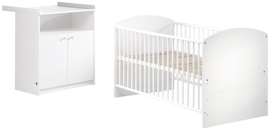 Beschreibung Sparset Classic Line weiß Dekor weiß 2-teilig, mit Kombi-Kinderbett (inklusive Umbaukit) und Wickelkommode mit Wickelaufsatz Kombi-Kinderbett zum Jugendbett umbaubar