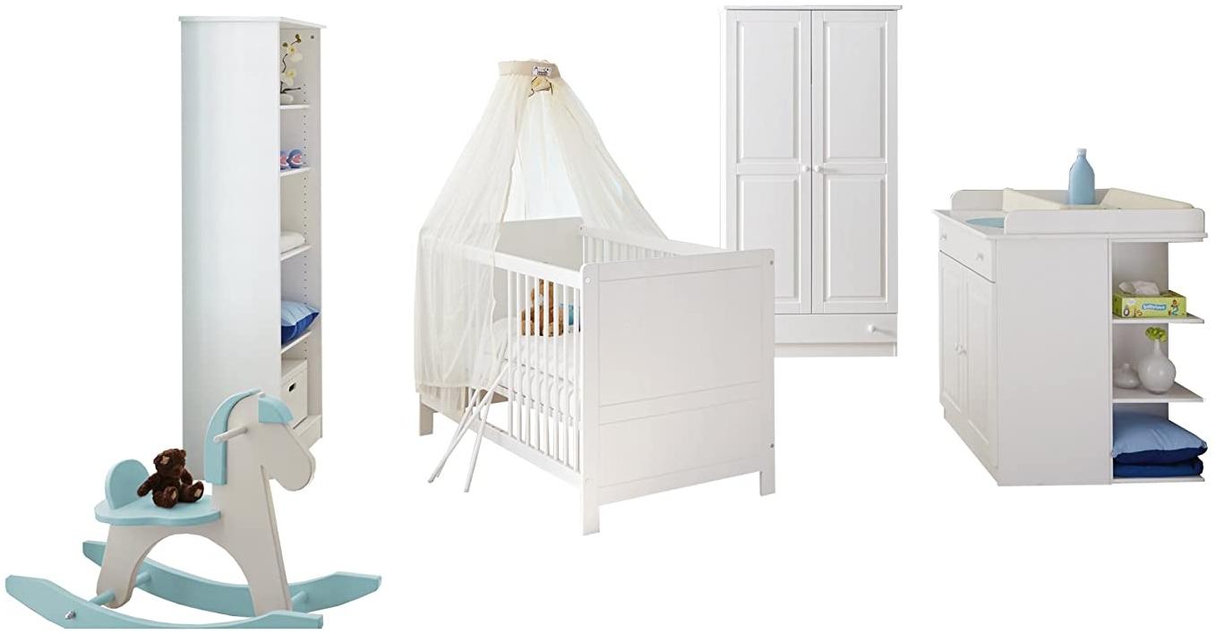 in Babyzimmer Sets 4-teiligTicaa 'Moritz' 4-tlg. Babyzimmer-Set Kieferweiß, aus Bett 70x140 cm, Wickelkommode inkl. Anstellregal, Kleiderschrank und Standregal