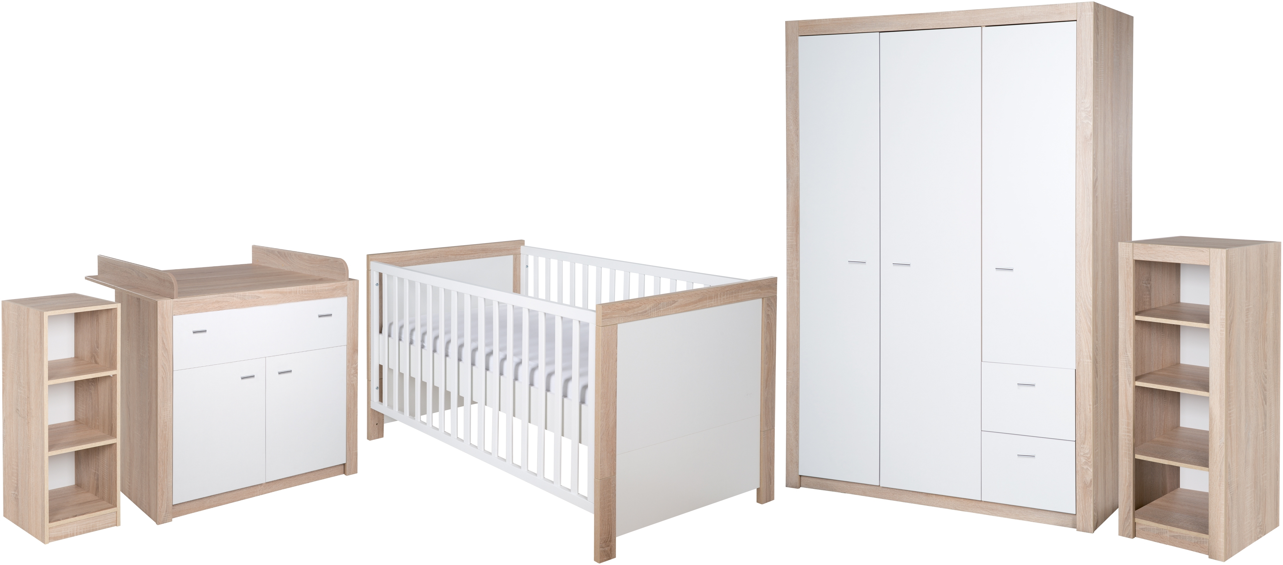 | Name | roba Komplett-Kinderzimmer 'Leni 2', großes Babyzimmer Set weiß/Eiche sägerau inkl. Baby- bzw. Kinderbett 70x140 cm, Wickelkommode, 3-türigem Schrank, Seitenregal & Standregal |