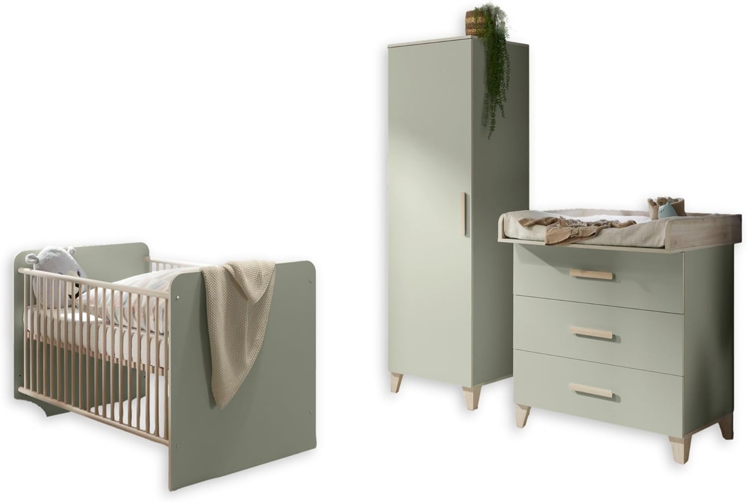 | Name | PRIZZI Babyzimmer Komplett-Set in Pastellgrün / Aurum Optik - Babyzimmer Möbel-Set 3-teilig bestehend aus Kleiderschrank, Babybett & Wickelkommode |
