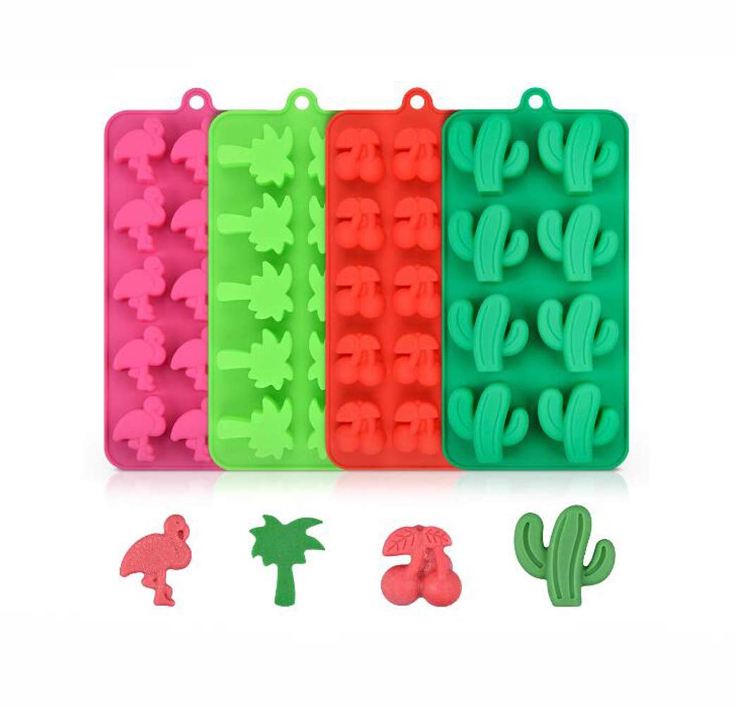 in BackformenSilikon-Formen für Süßigkeiten,SchokoladeKaktus, Flamingo, Kokosnuss, Kirsche zum Herstellen von Kuchen, Gello, Gummi, Eiswürfel, Seife, Basteln, Backzubehör (zufällige Farbauswahl)