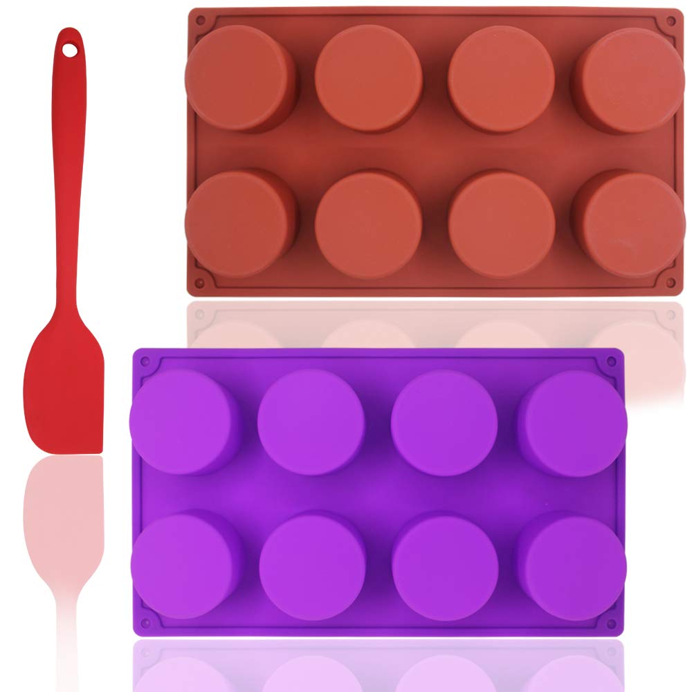 8-cavity rund Silikon Form mit PfannenwenderSilikon, dukuan 2 Packungen Antihaft-Zylinder Form für handgefertigte Seife, Cupcake, Muffin, Ice Cube ? Braun und Violett