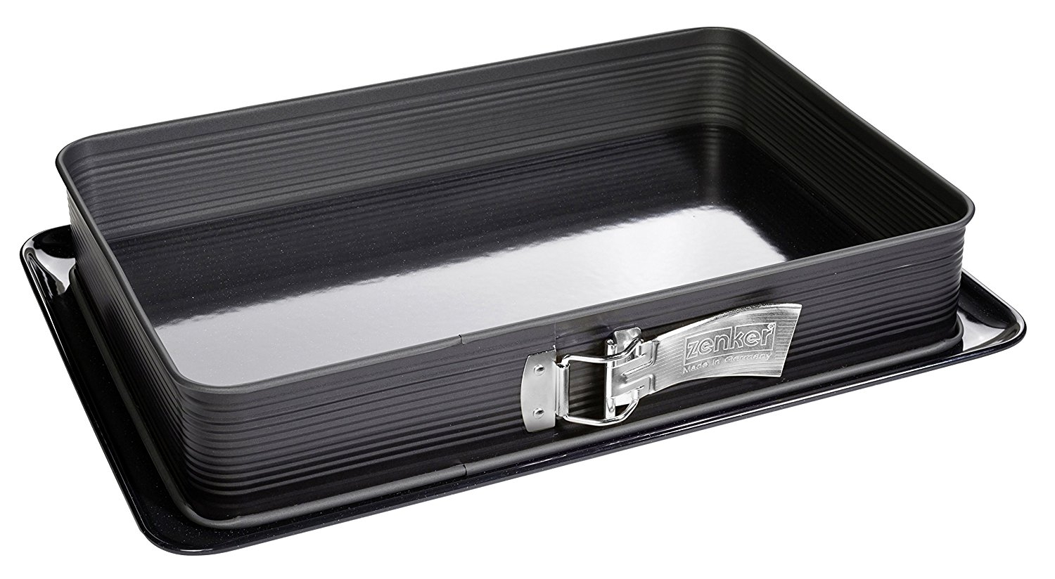 Black Deal in BackformenZenker Rechteck-Springform DELUXEeckige Premium-Backform mit liertem Boden und Auslaufschutz, Kuchenform mit Antihaftbeschichtung (Farbe: Schwarz metallic), Menge: 1 Stück