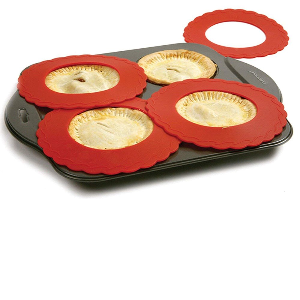 in BackformenSet mit 4 Mini-Krustenschutzscheiben aus Silikon ? schützen den Rand von 12,7 cm und 15,2 cm Torten vor VerbrennungMini-Kuchenpfannen