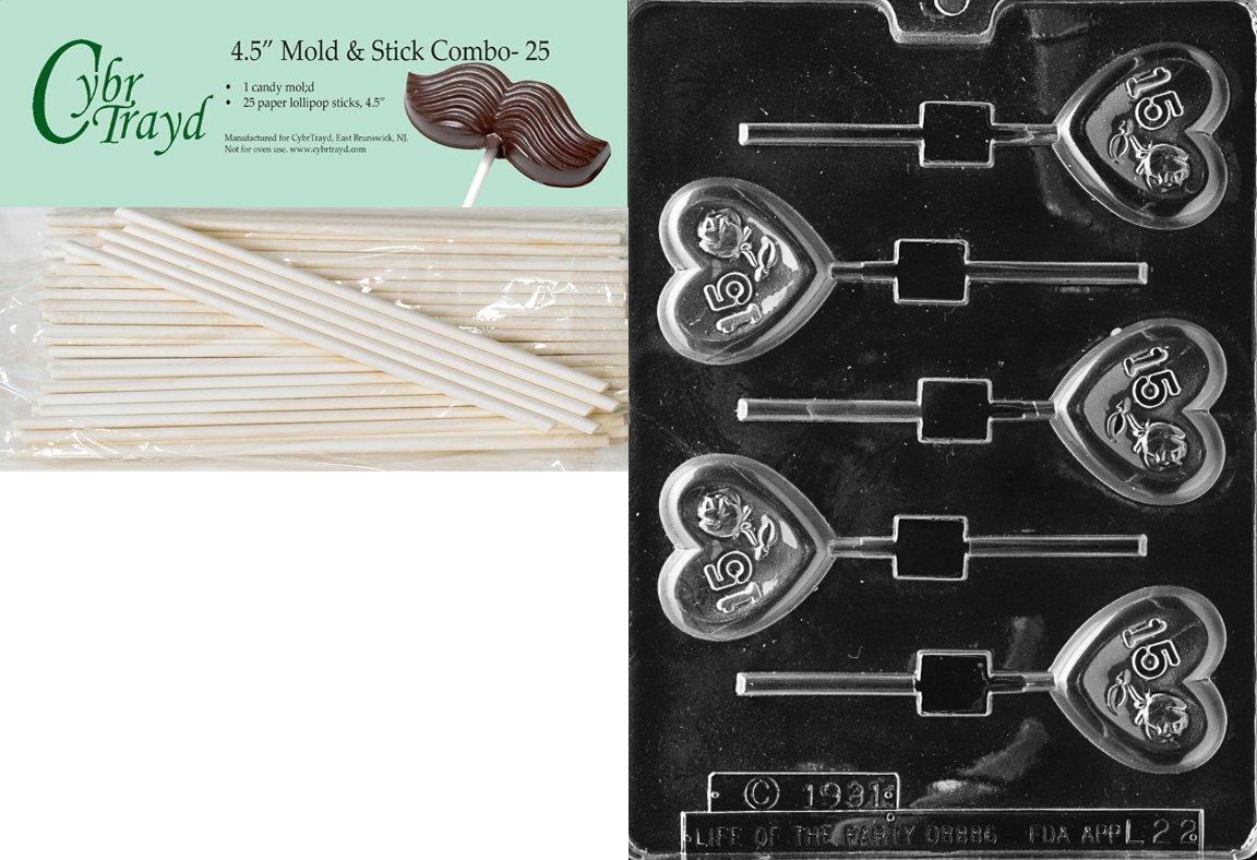 in BackformenCybrtrayd 45St25-L022 No.15 Rose Heart Lolly Buchstaben und Zahlen für Schokolade und Süßigkeiten mit 25 Cybrtrayd 11,4 cm Lollipop Sticks