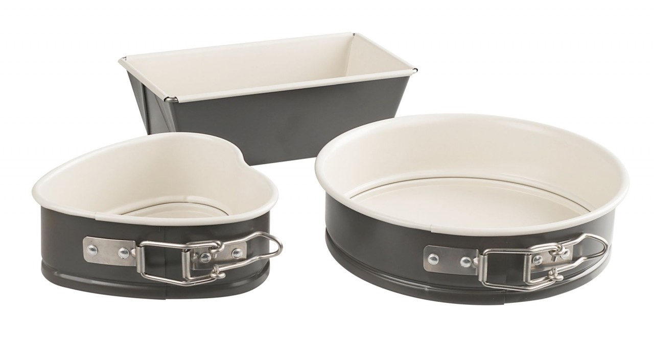 - Das 3er Mini-Backformen-Set umfasst eine Springform mit einem Durchmesser von 16 cm, ein Herz-Springförmchen mit 11 cm und eine Kastenform von 15 cm.